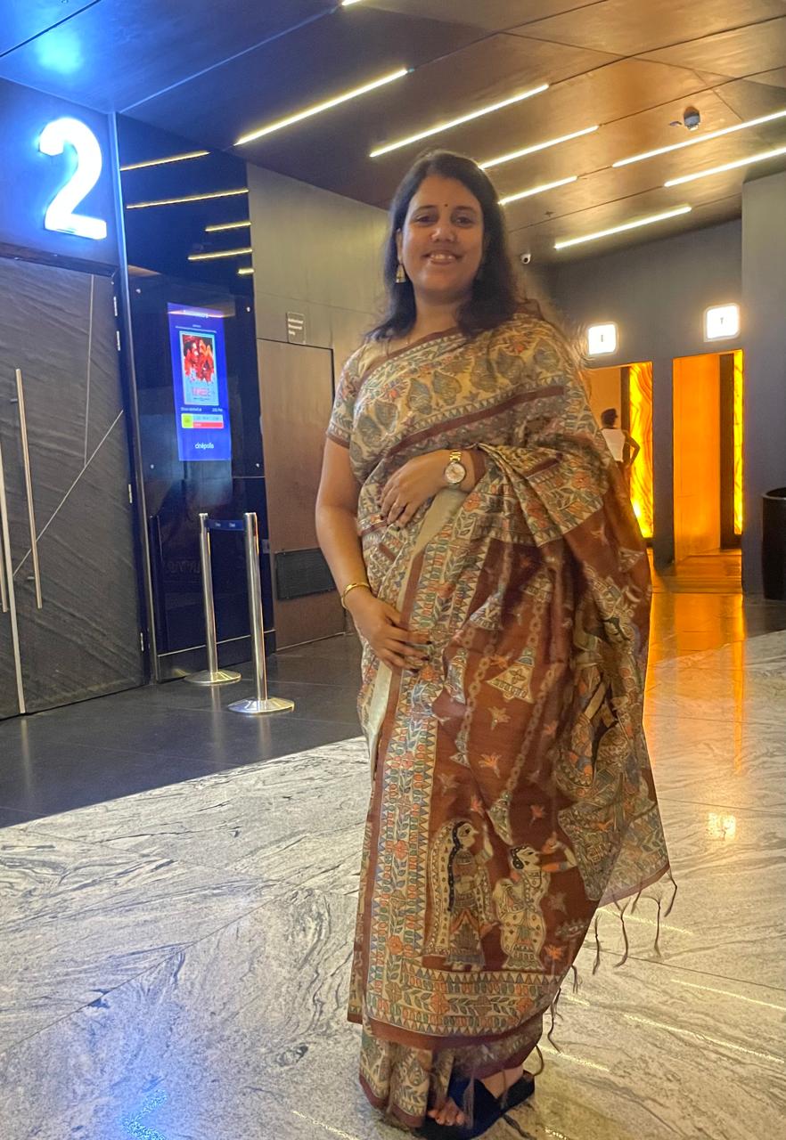 Adorned in timeless tales and vibrant colors, she shines in this Pure Gachi Tussar saree—each brushstroke of Madhubani art turning tradition into a masterpiece she now calls her own