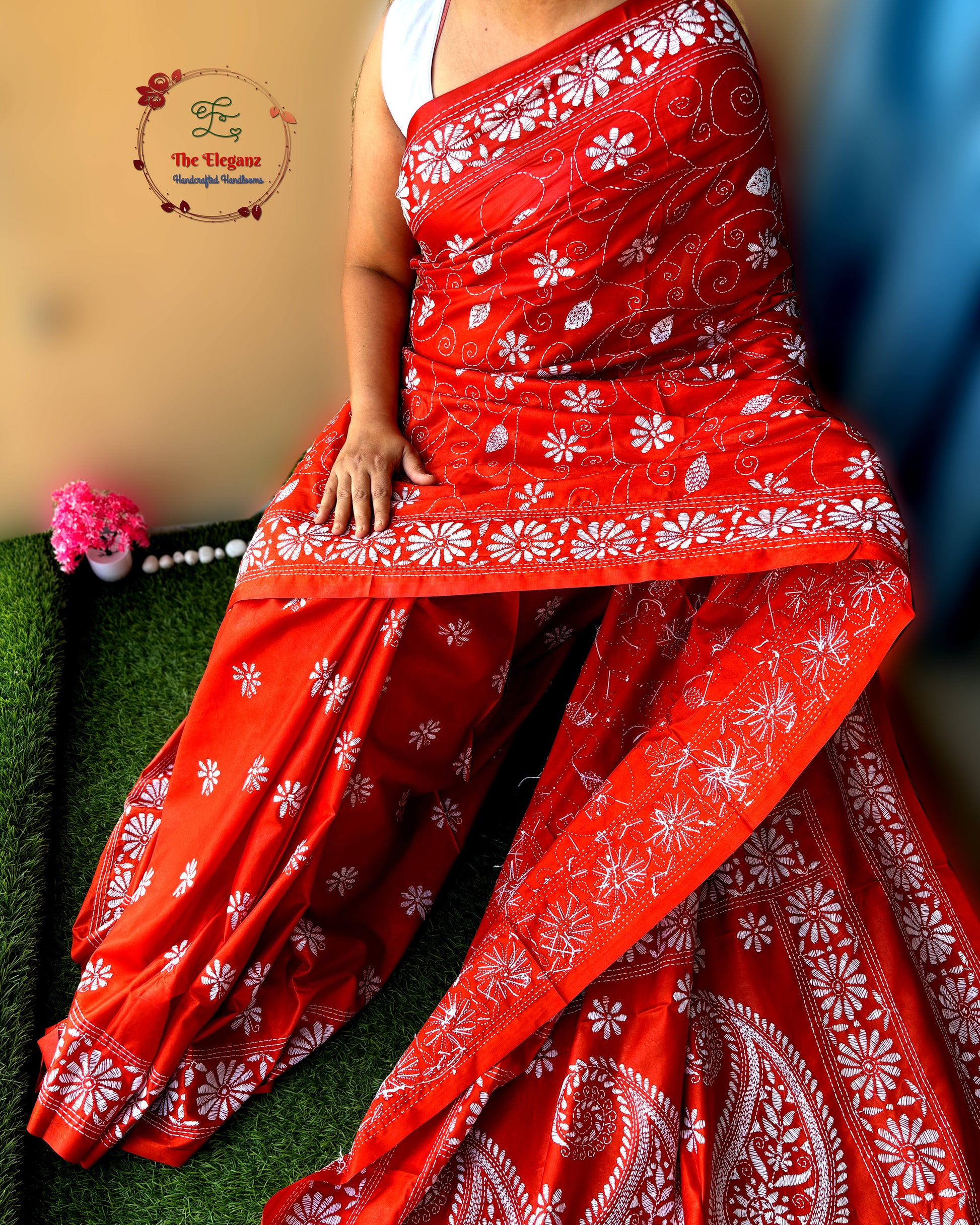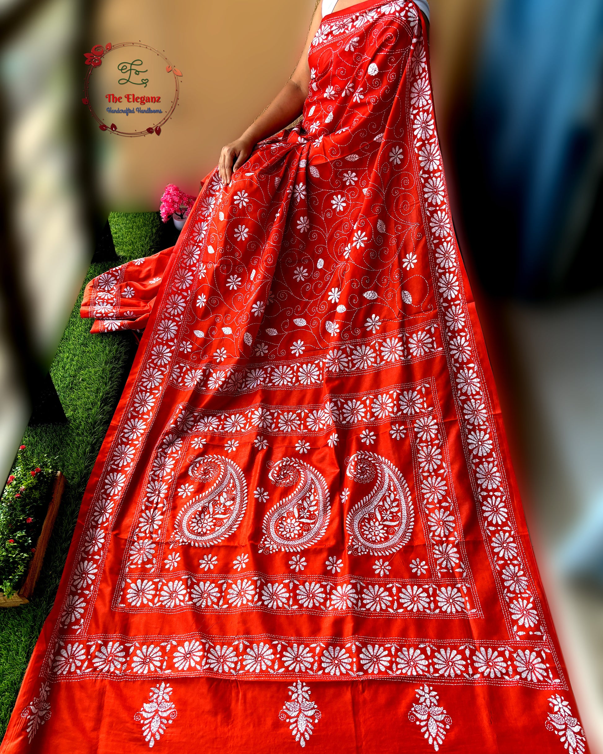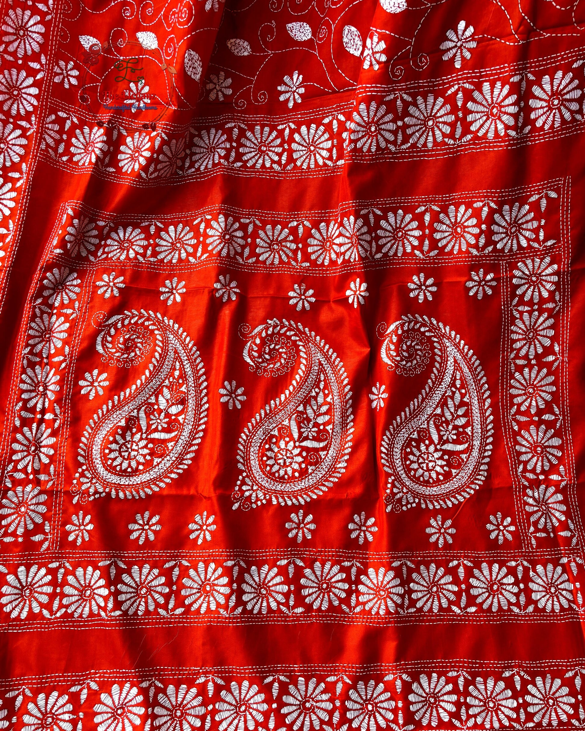 Rust-orange vibrance sprinkled with paisleys and vines, radiating the warmth and joy of festive mornings.