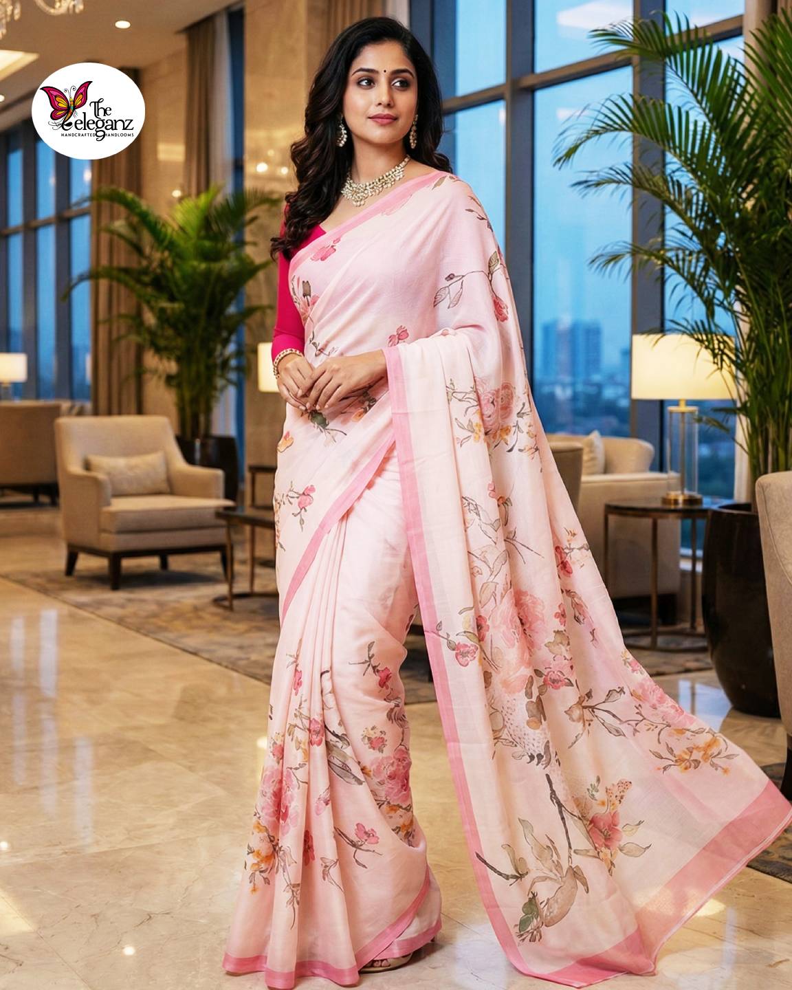 Blush Breeze is a soft satin silk saree made for light, feel-good moments. Set in a soothing blush-pink base with delicate floral prints, this saree has a smooth, flowy fall and a subtle sheen that feels elegant without being loud. Easy to wear and easy to style, it’s perfect for brunches, day weddings, office celebrations, or intimate festive gatherings.