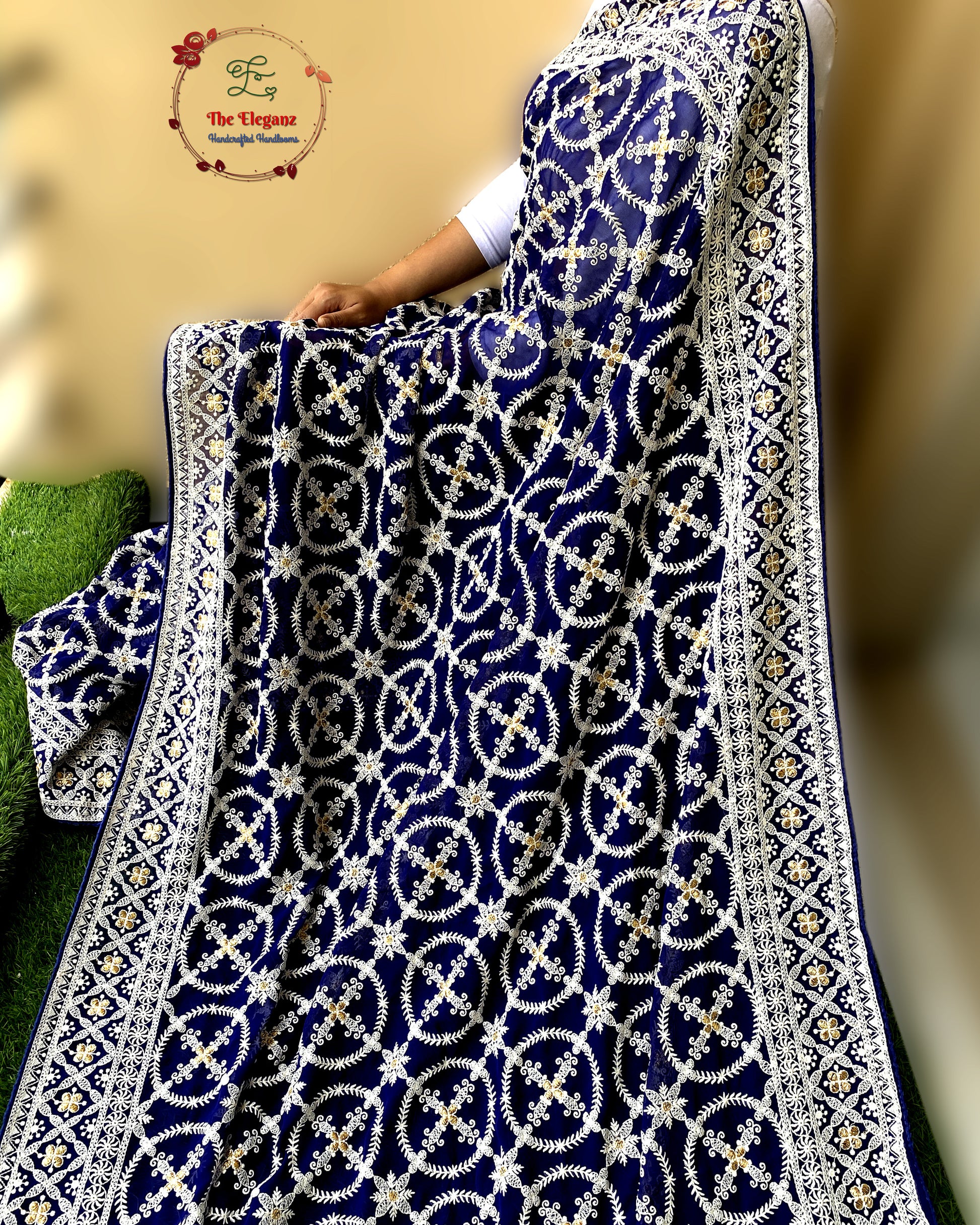 Fabric: Georgette (with machine chikankari embroidery, not handwork)