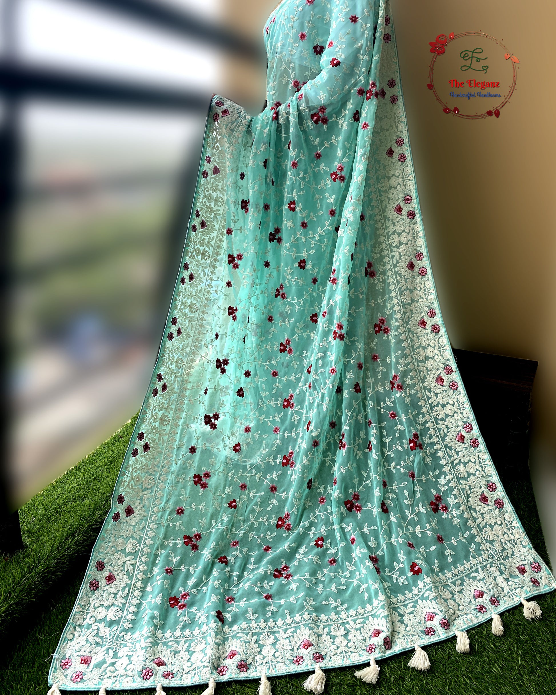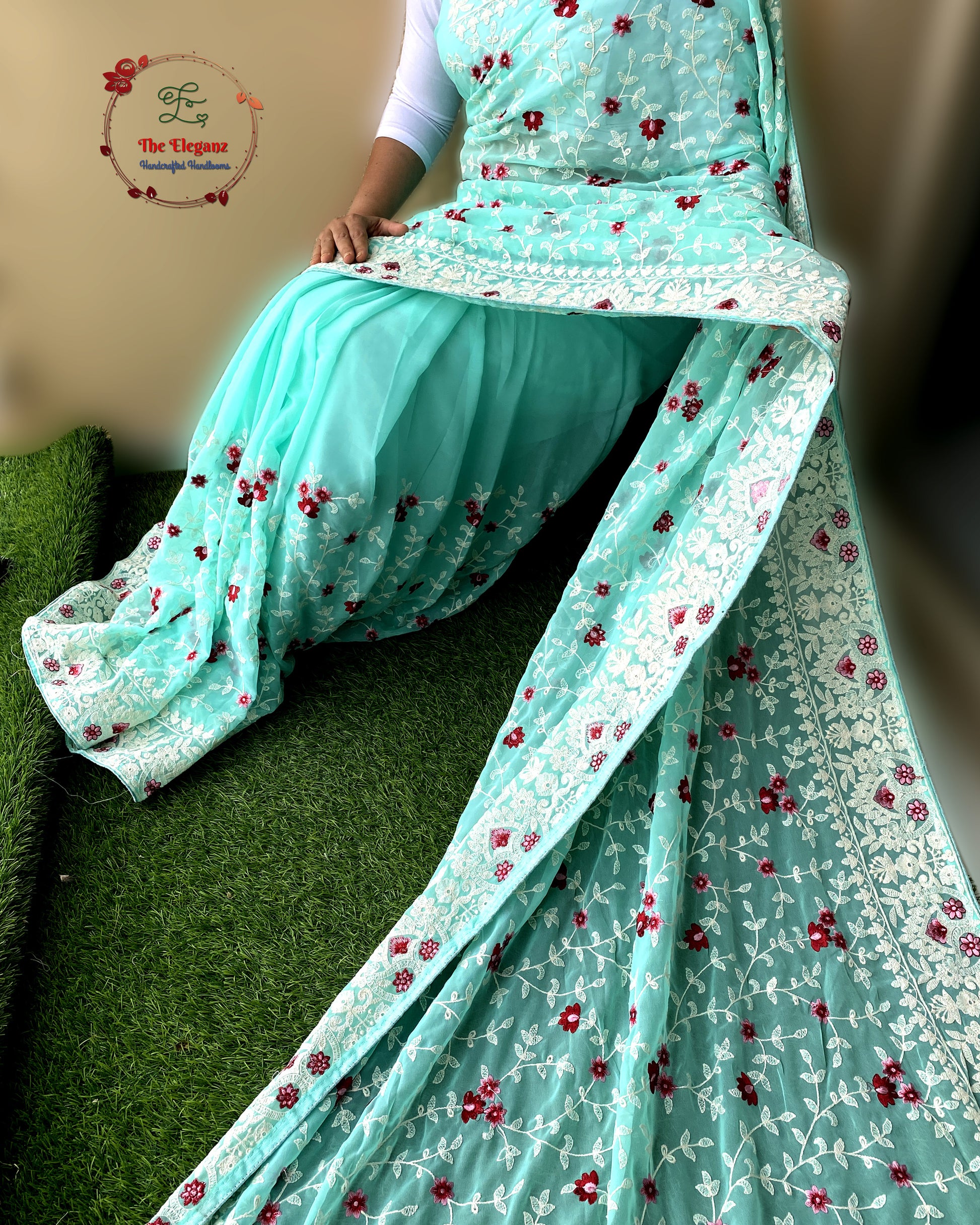 Colour: Sea Green base with Red & White floral embroidery