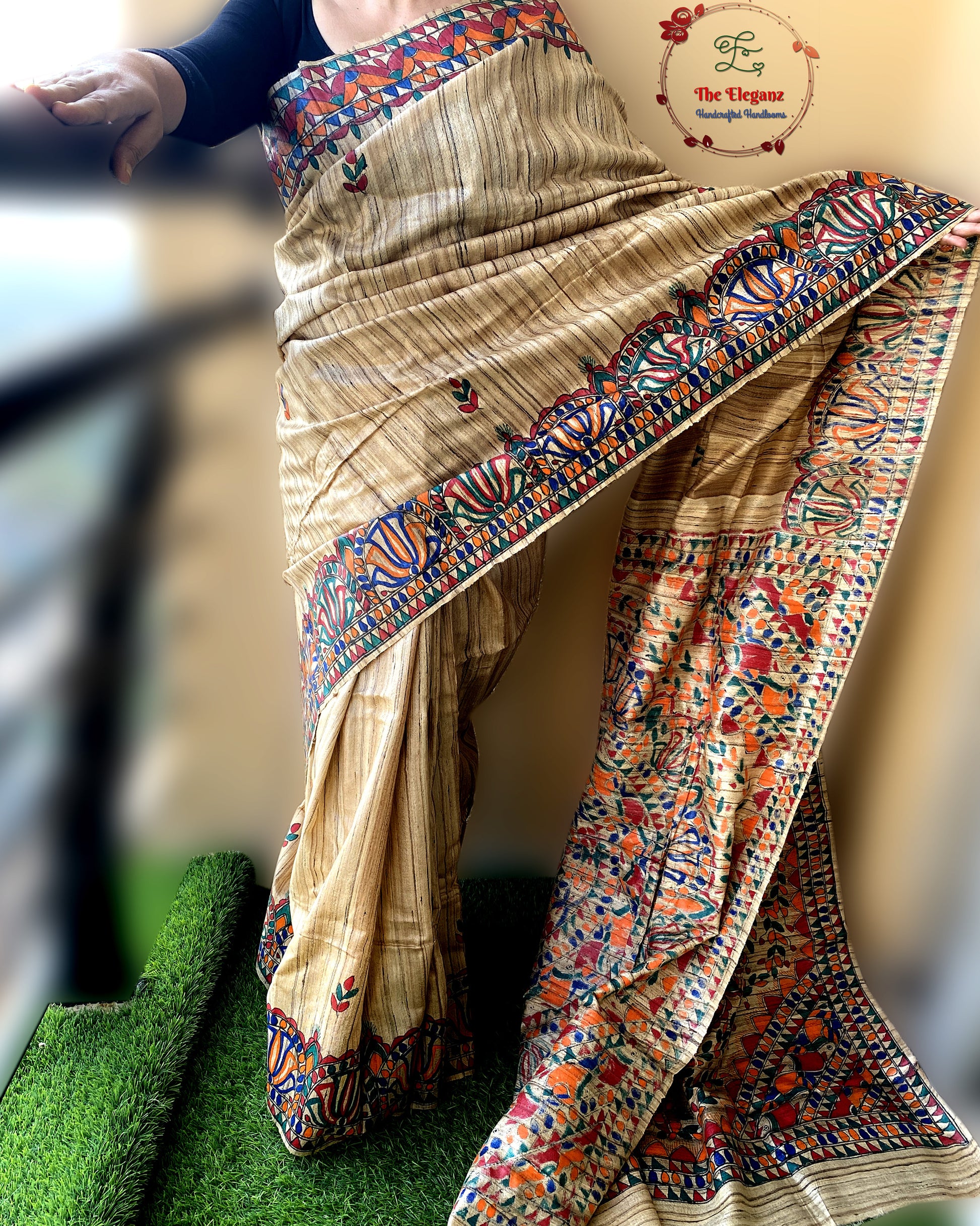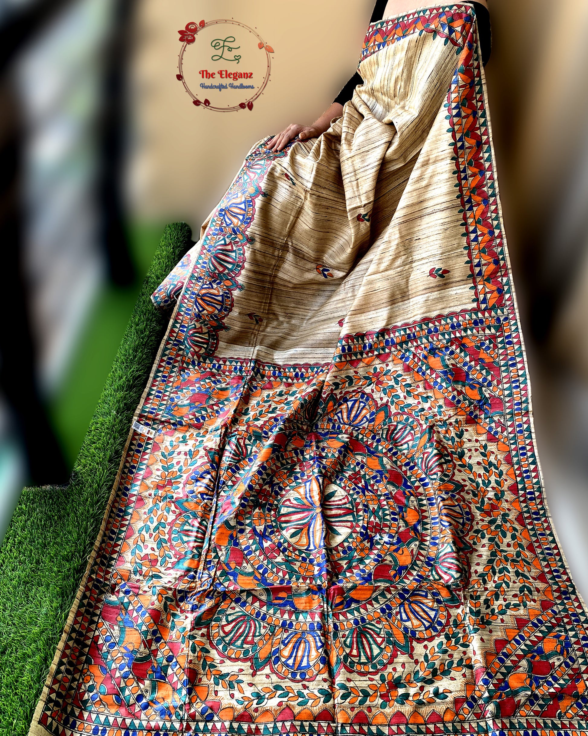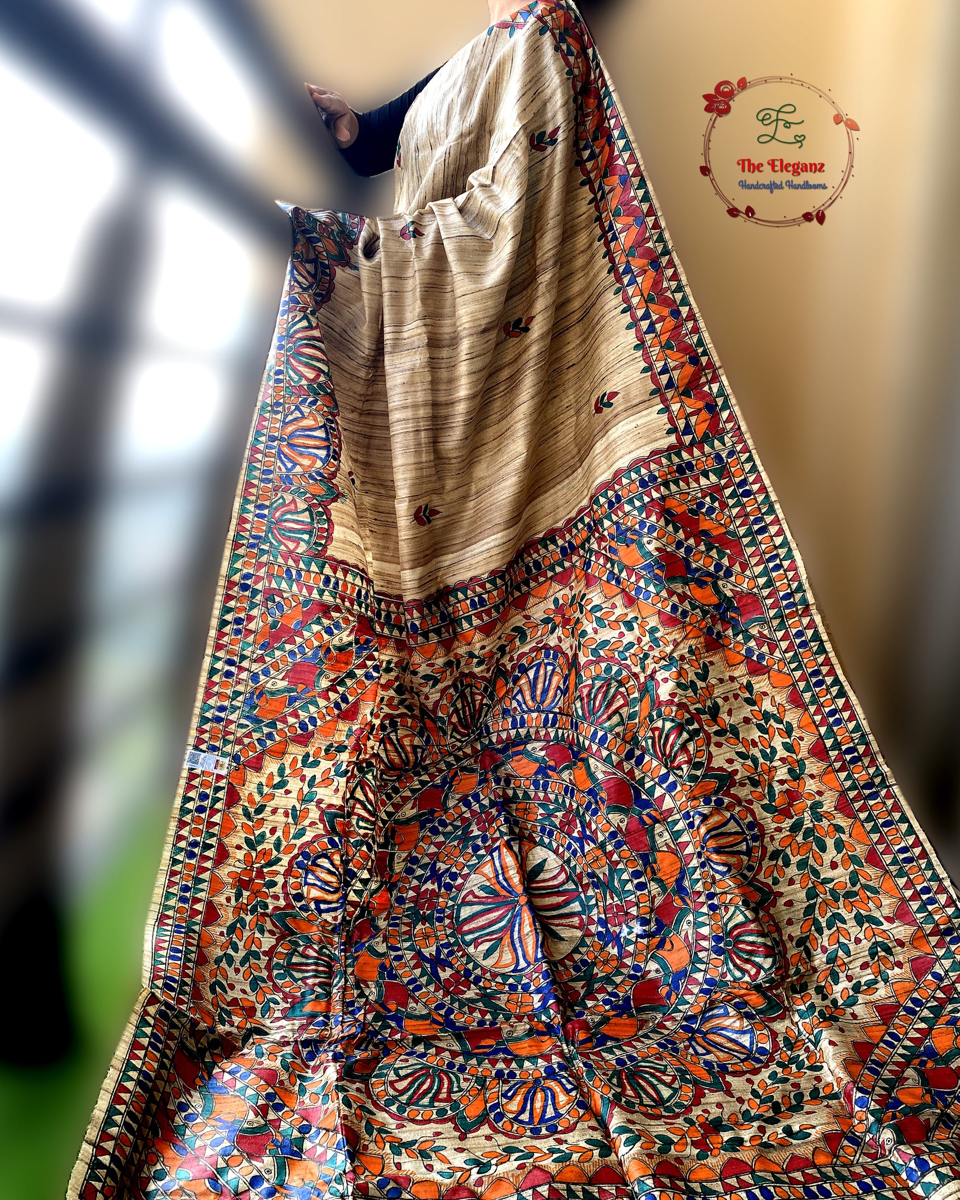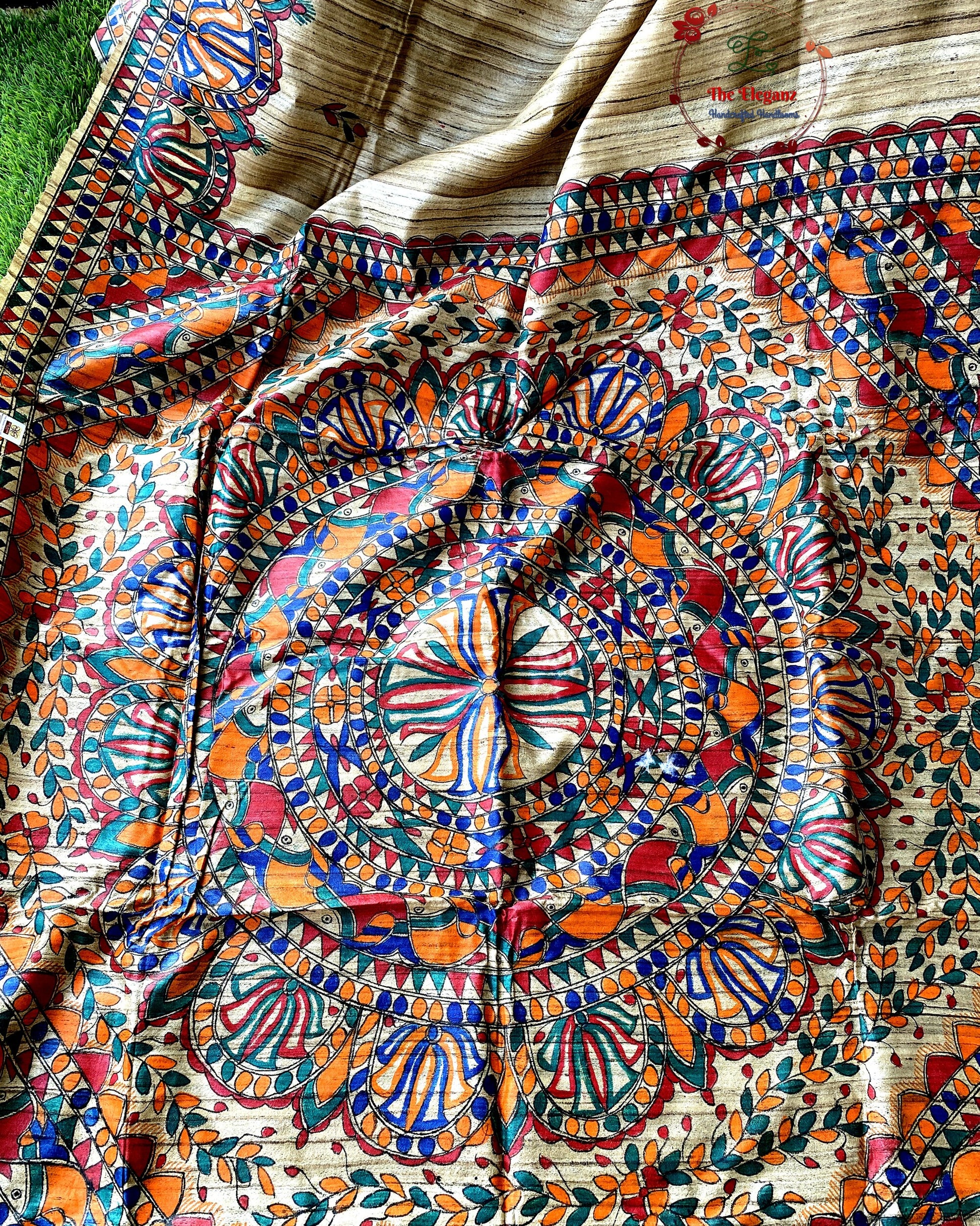 Origin: Bihar (Madhubani Painting) + West Bengal (Ghicha Silk weaving)