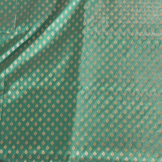 Colour: Emerald green body with golden bootis, magenta Patli Pallu with floral zari motifs
