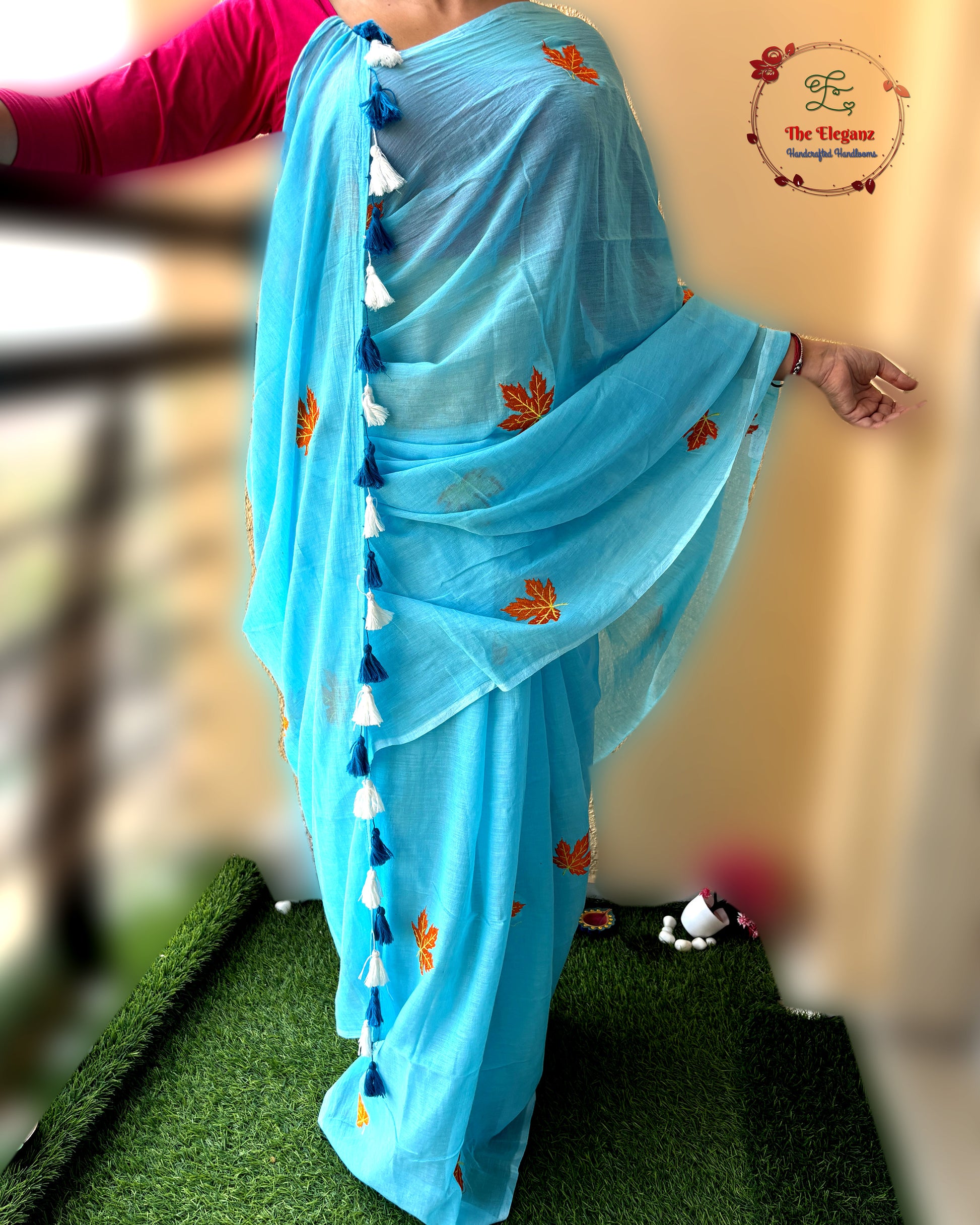 Deep teal canvas blooming with multi-coloured tassels, each a flutter of joy.