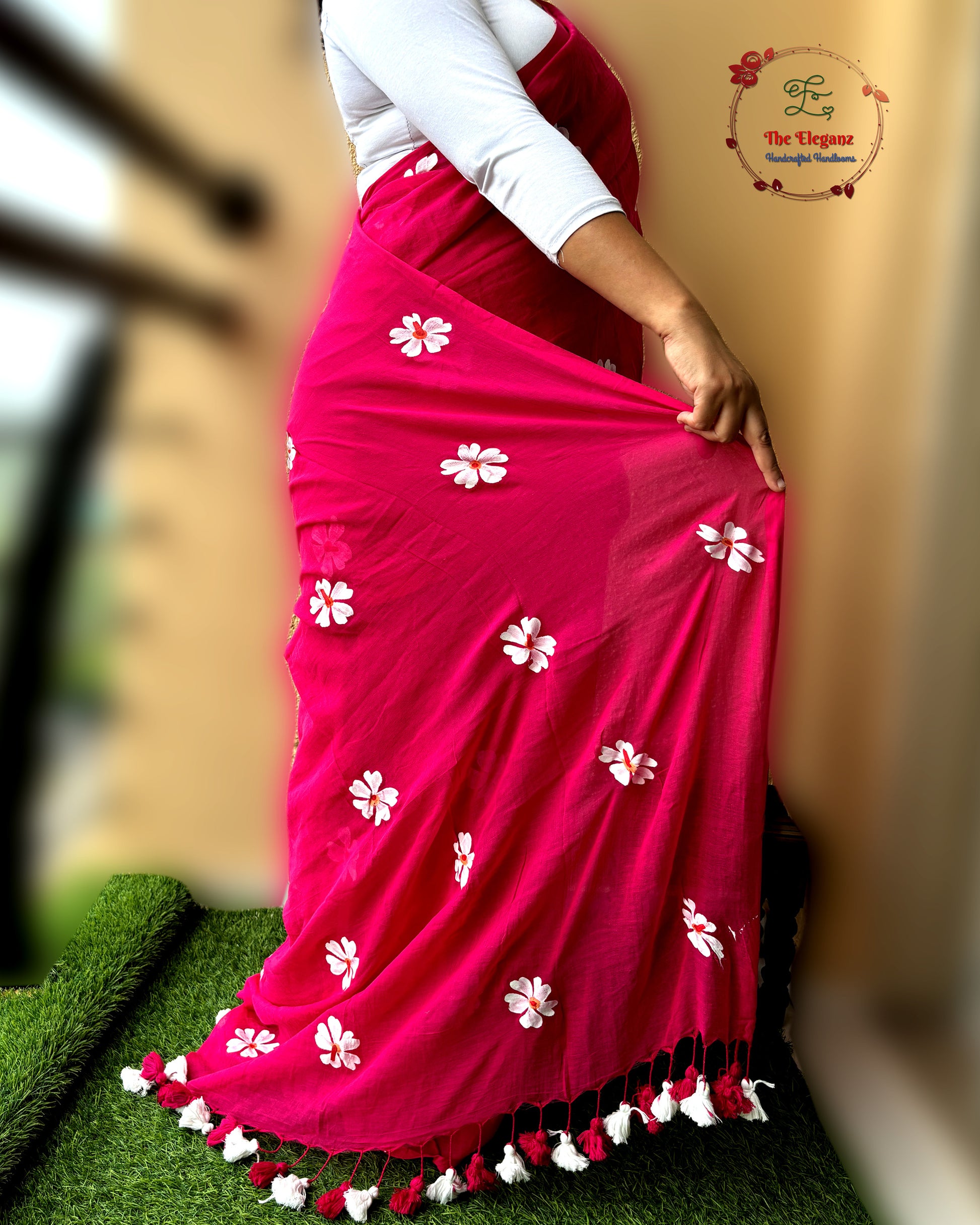 Candy-pink checks drifting on airy mul cotton, playful yet timeless in charm.