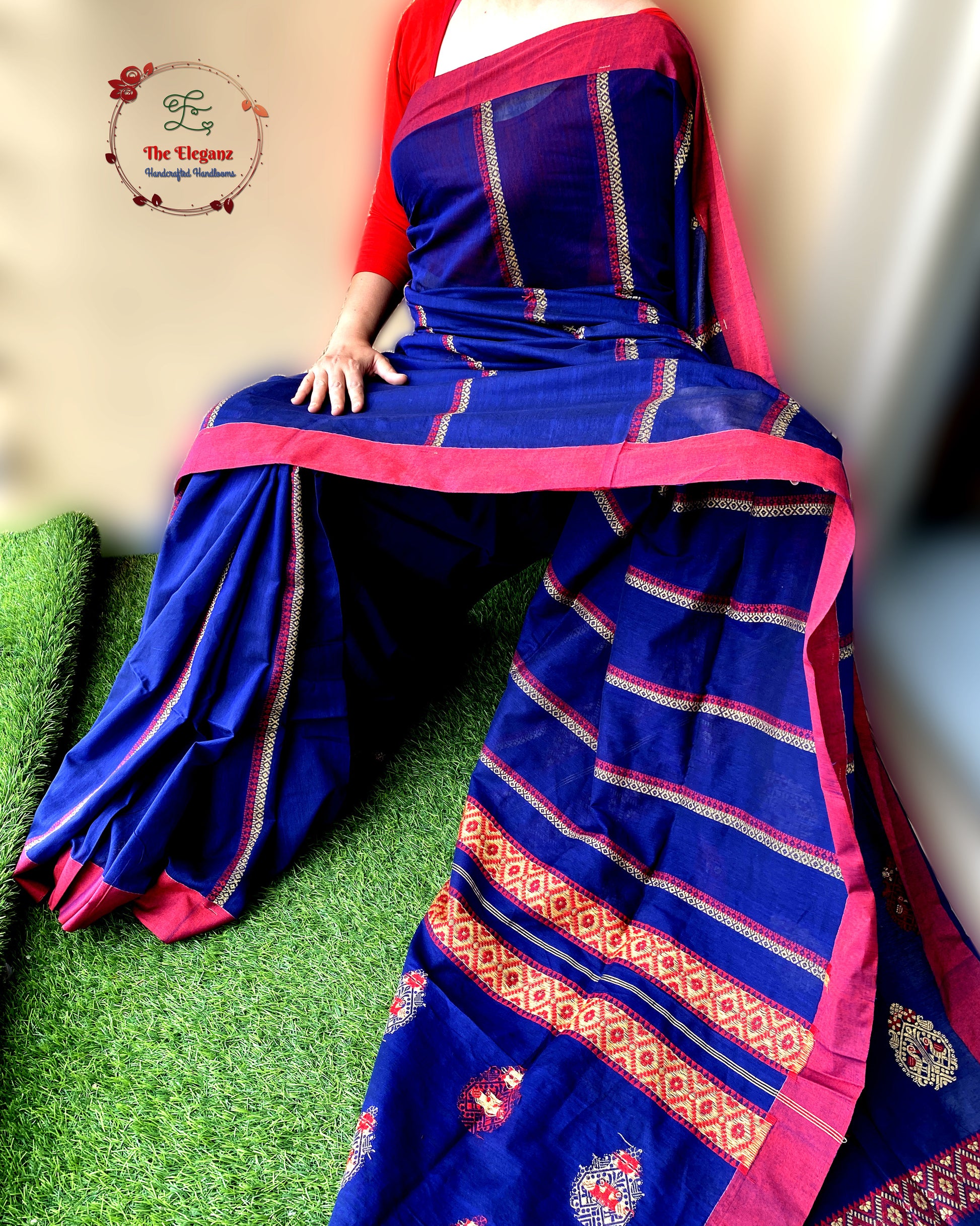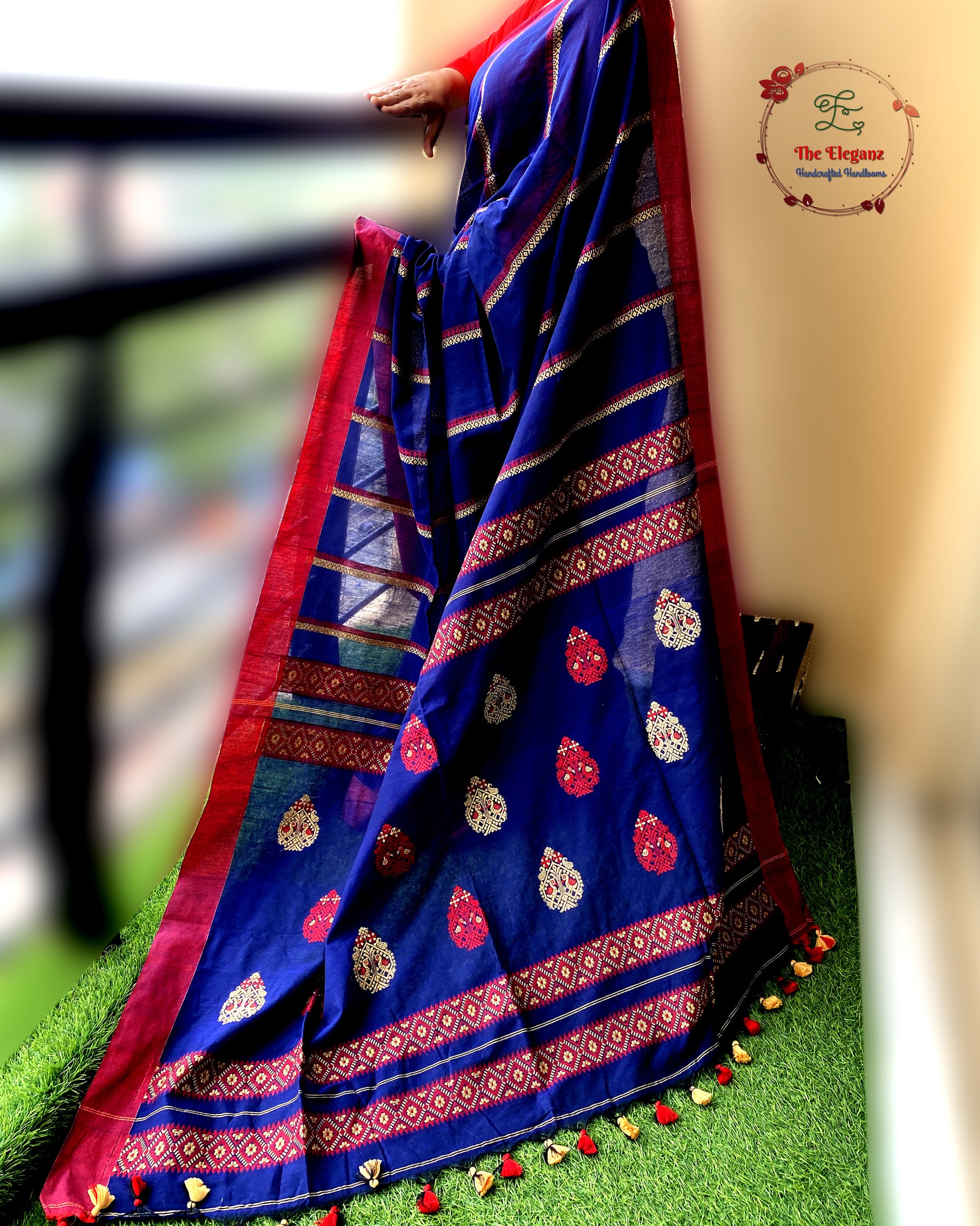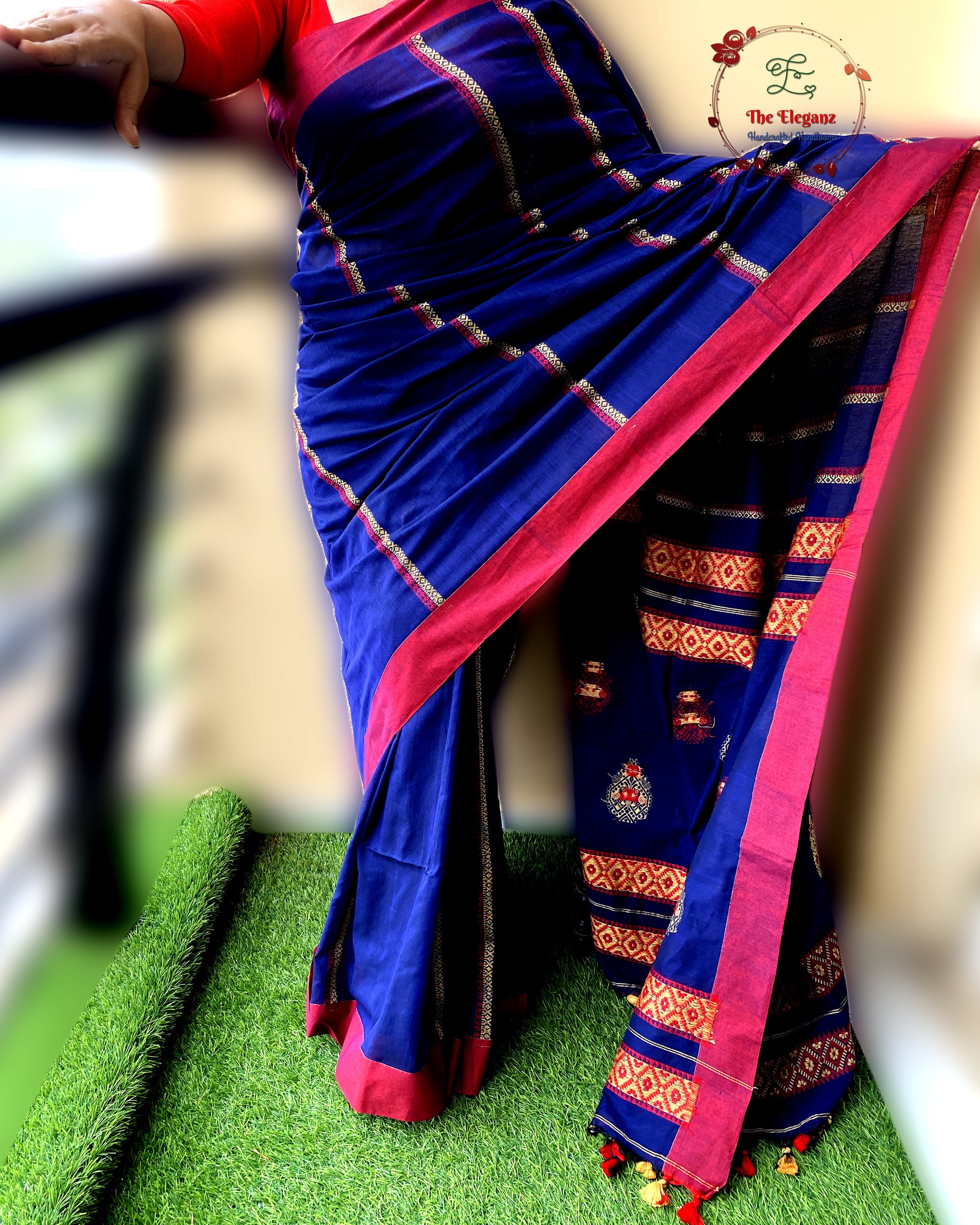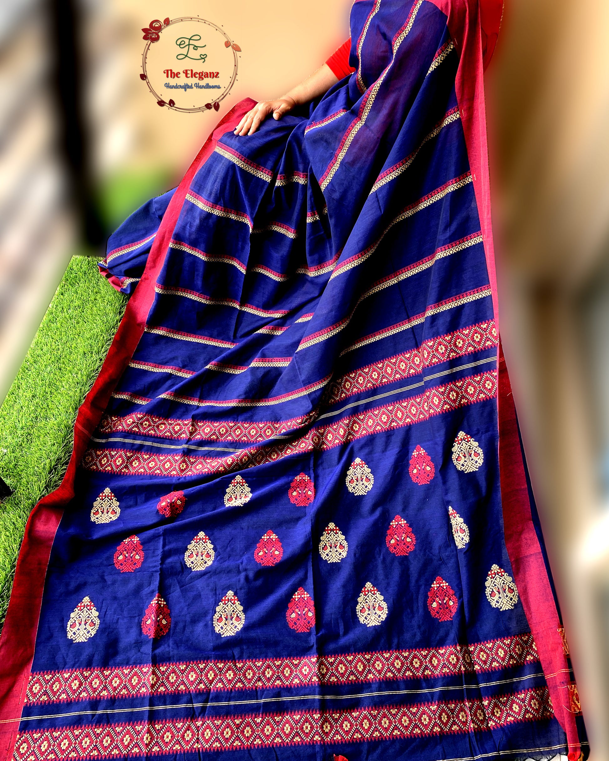 A royal symphony of navy and crimson - where bold motifs dance across silk, capturing the grandeur of timeless celebrations.