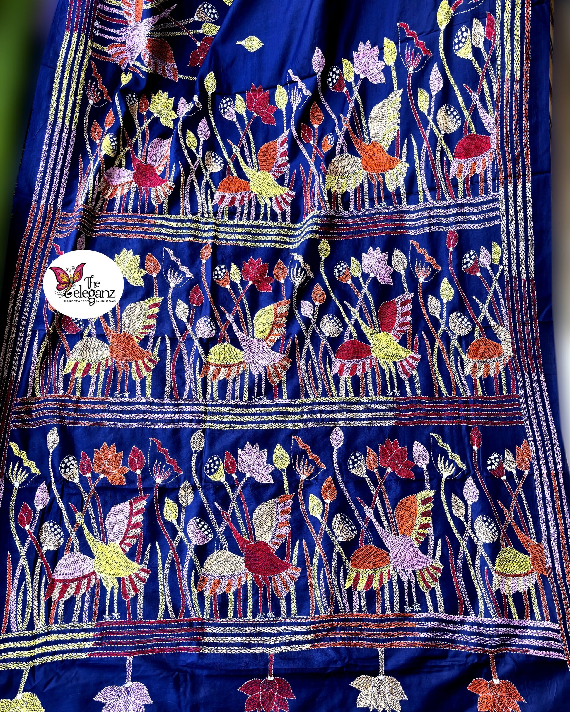 A garden in full bloom - vivid hand-embroidered lotuses that make every drape a piece of art.