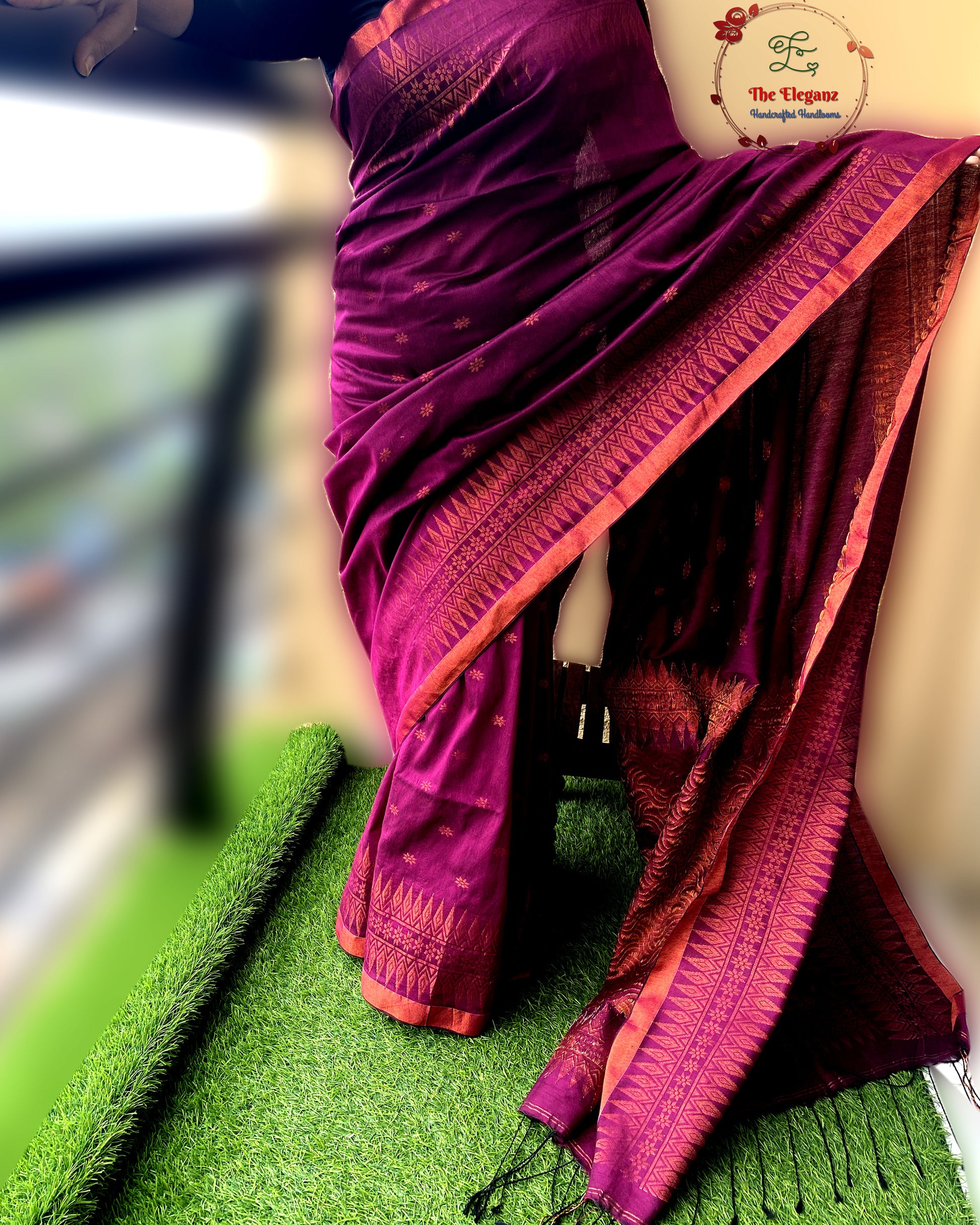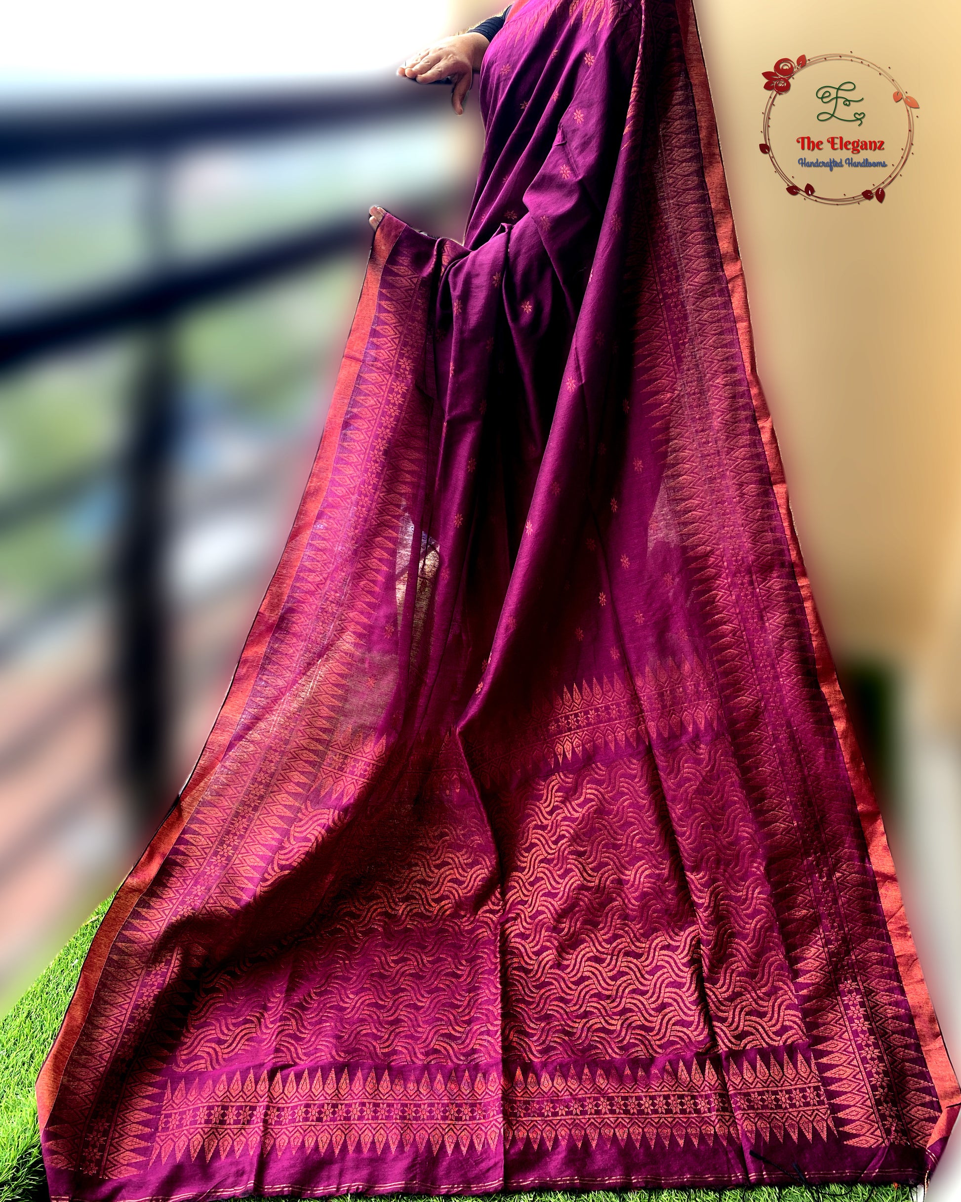 Fabric: 100% Pure Handloom Cotton with Copper Zari