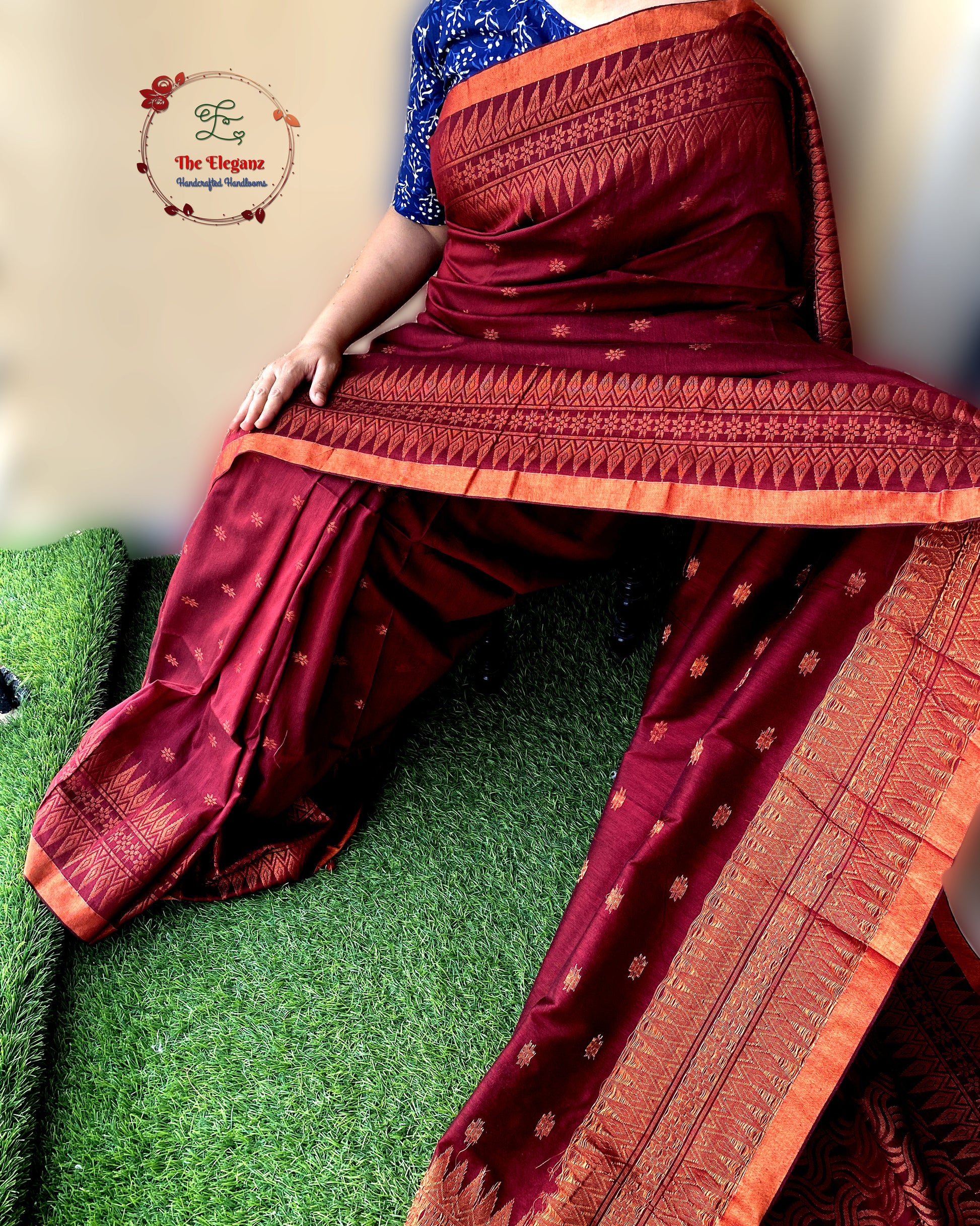 Fabric: 100% Pure Handloom Cotton with Copper Zari