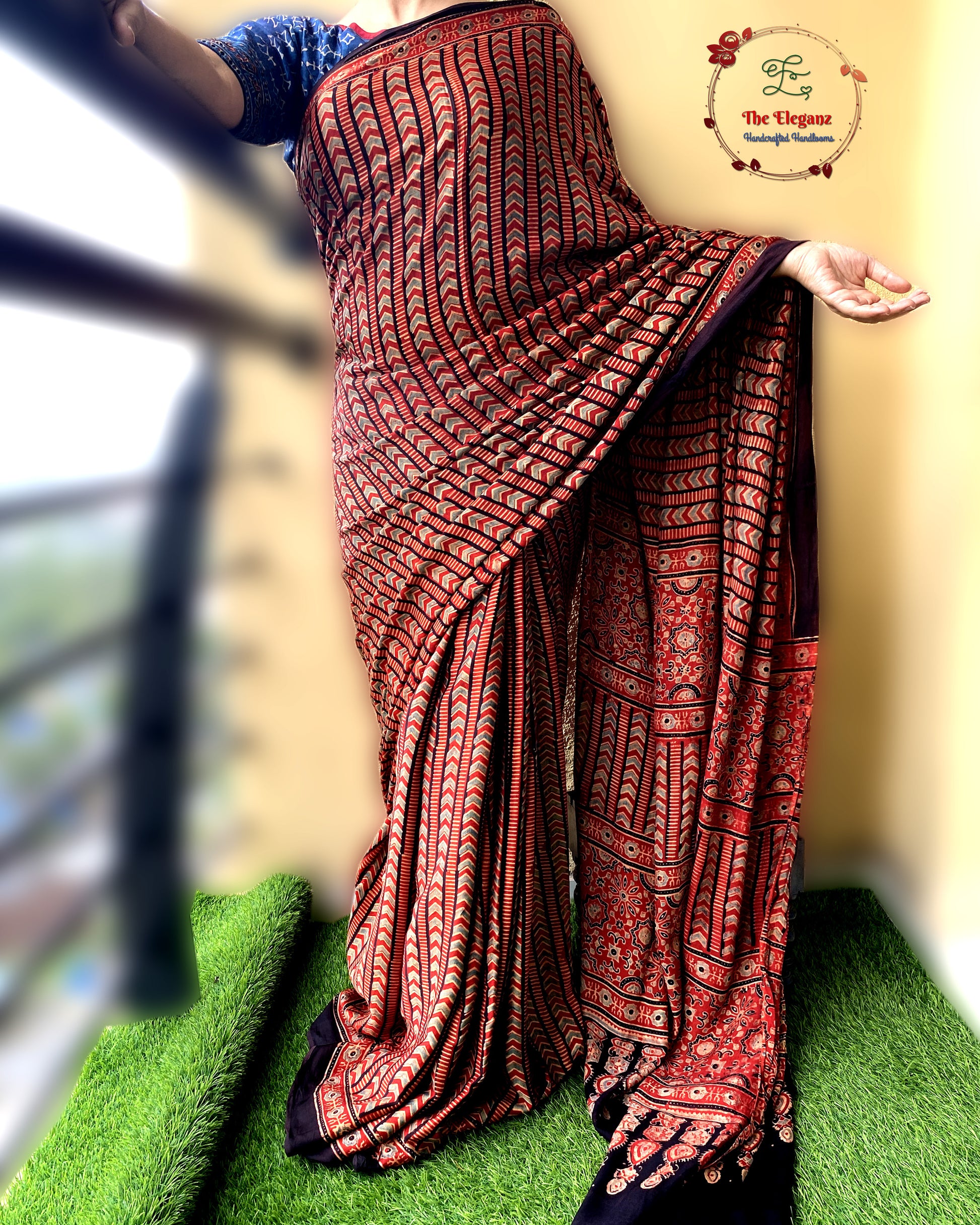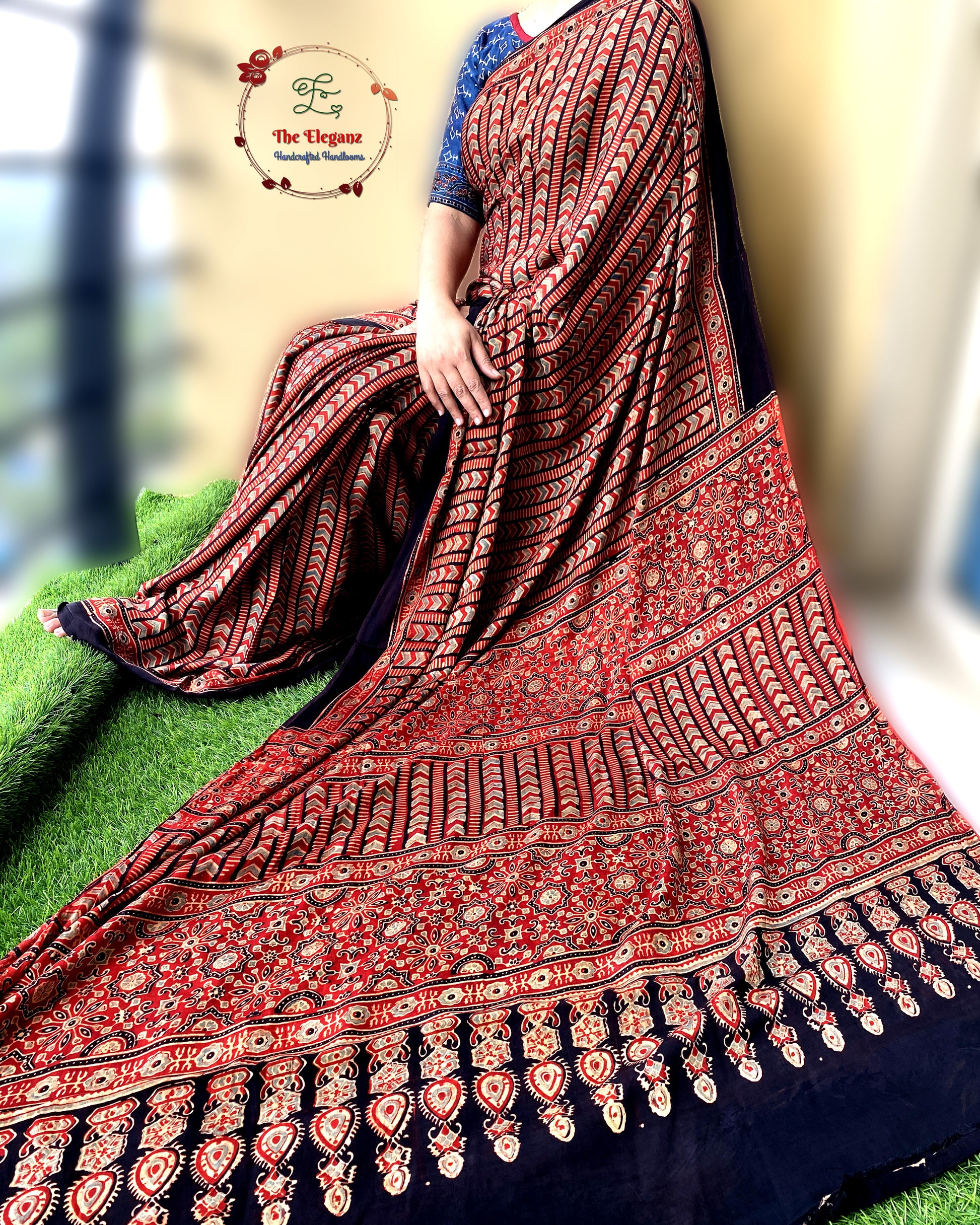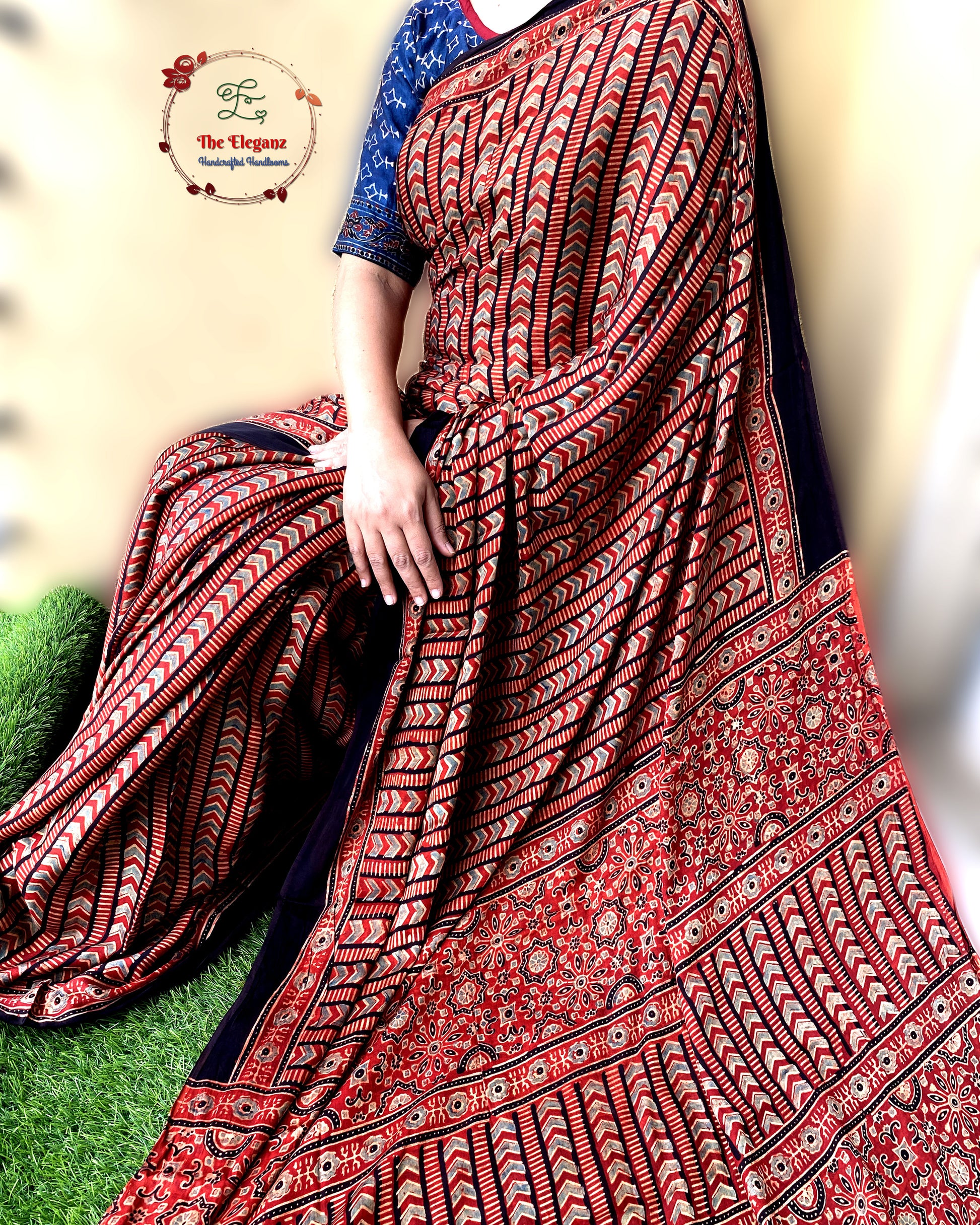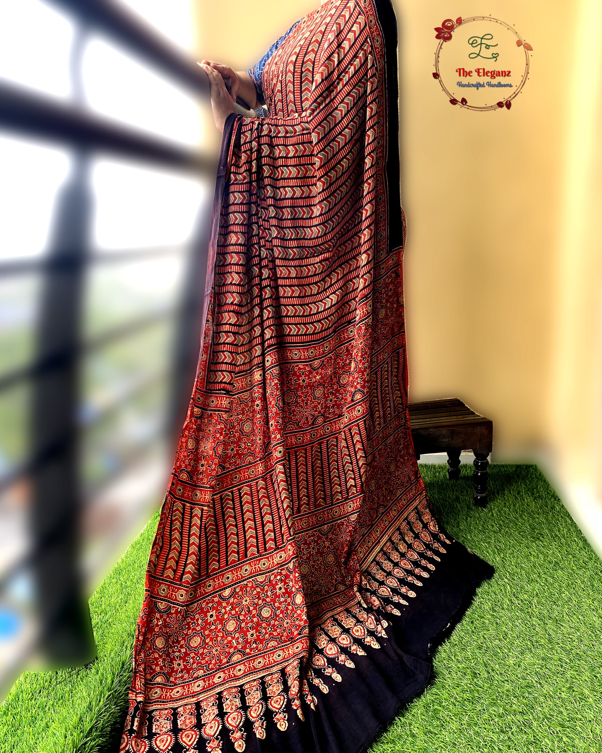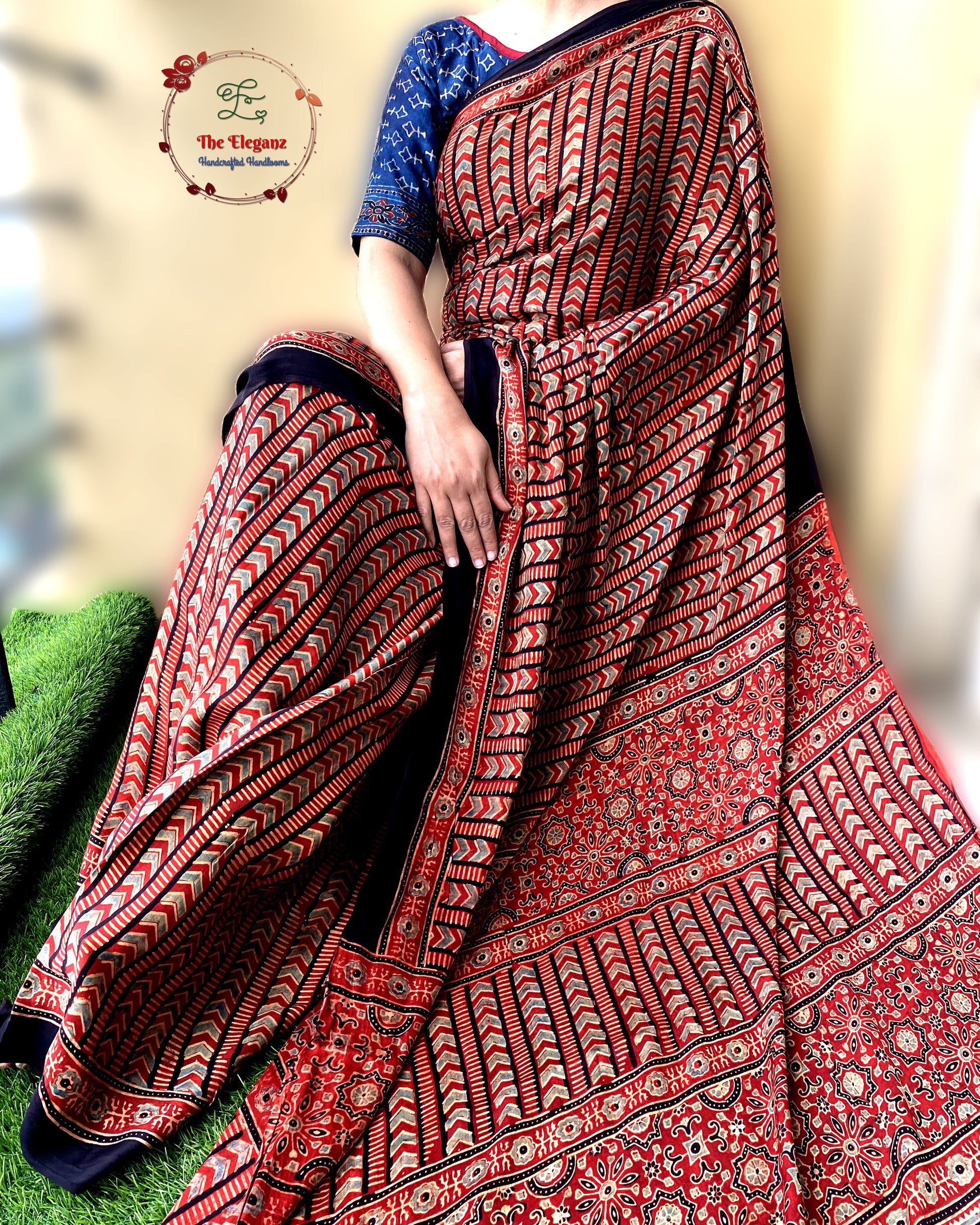 Work: Traditional Ajrakh hand block print, crafted with eco-friendly natural dyes