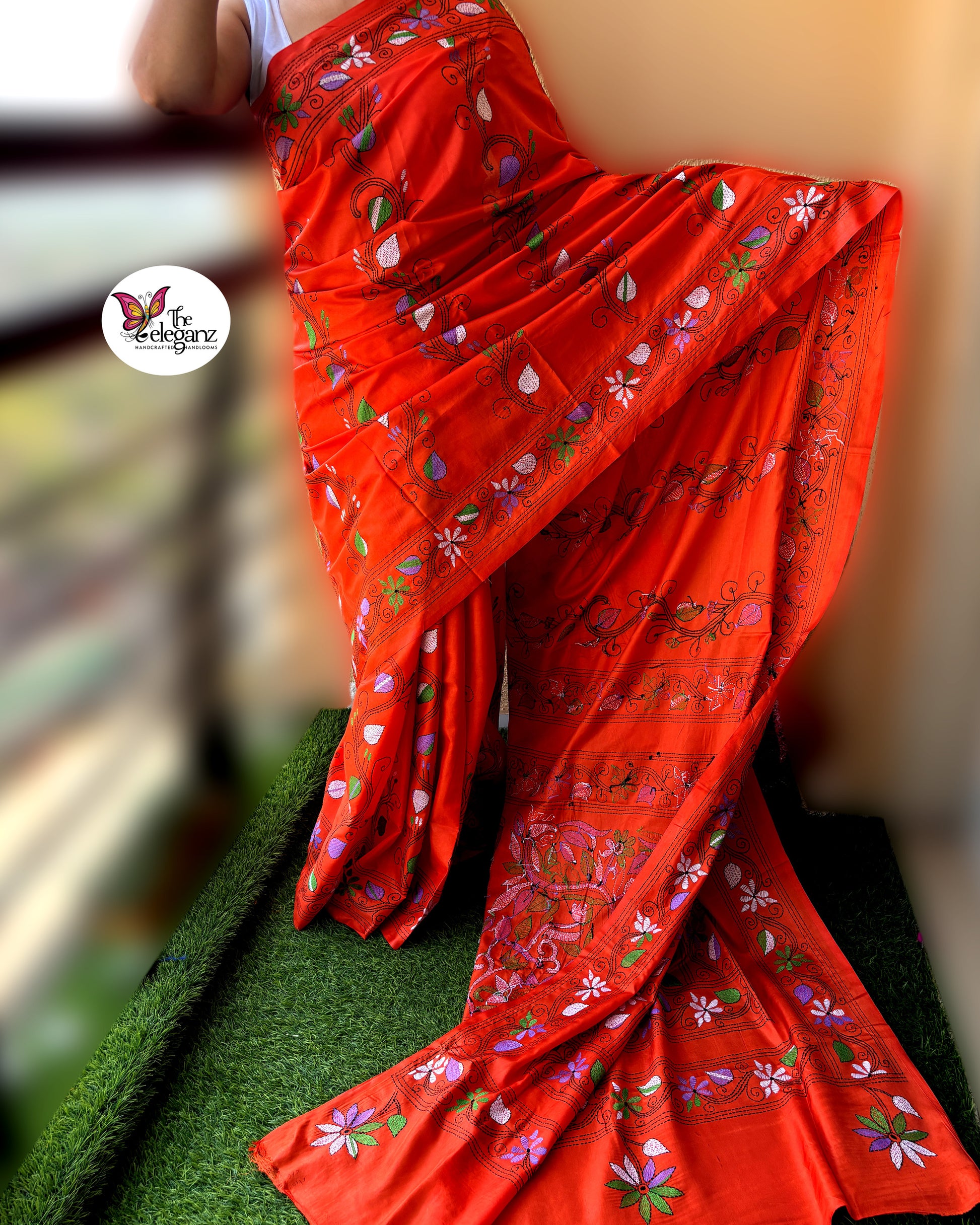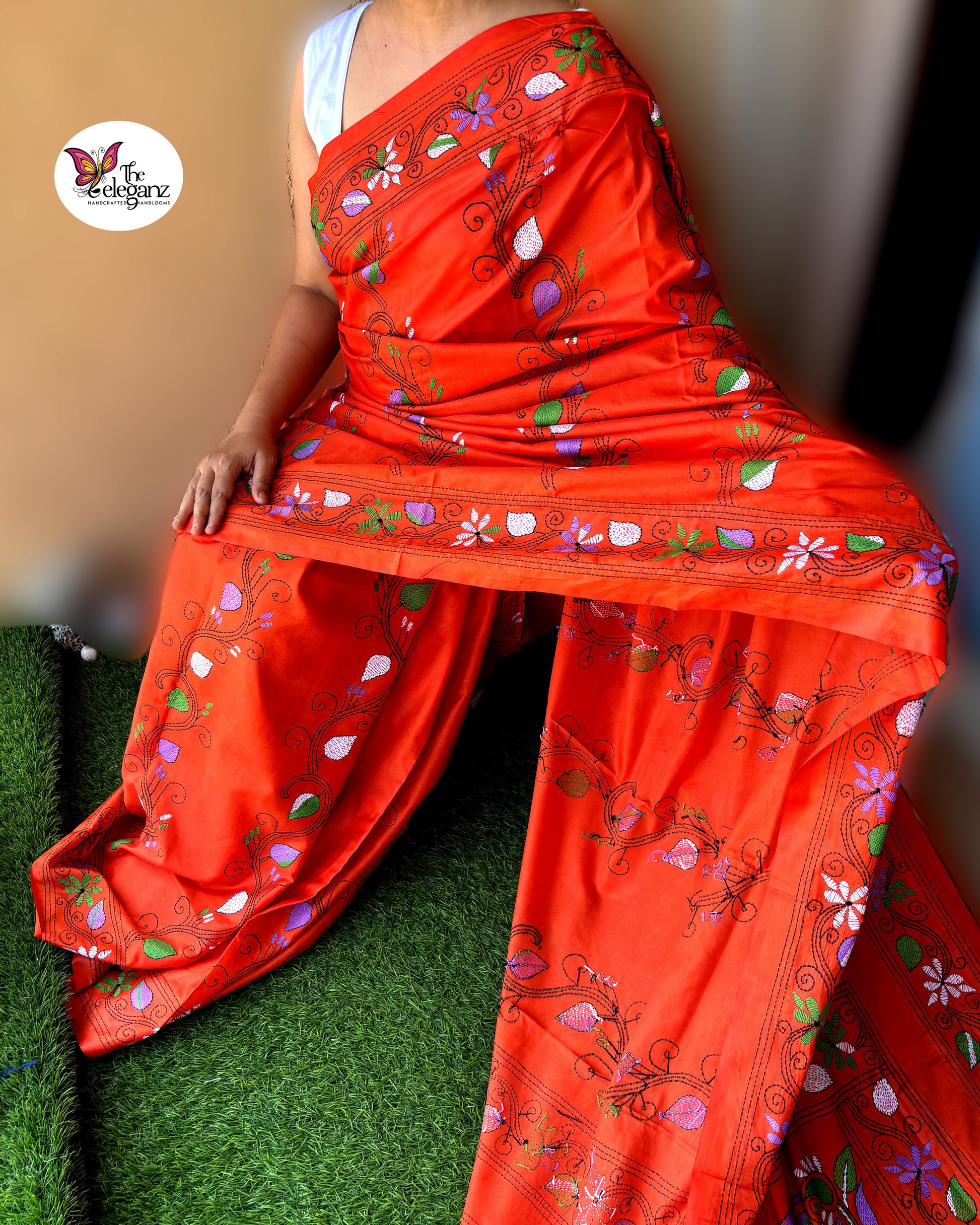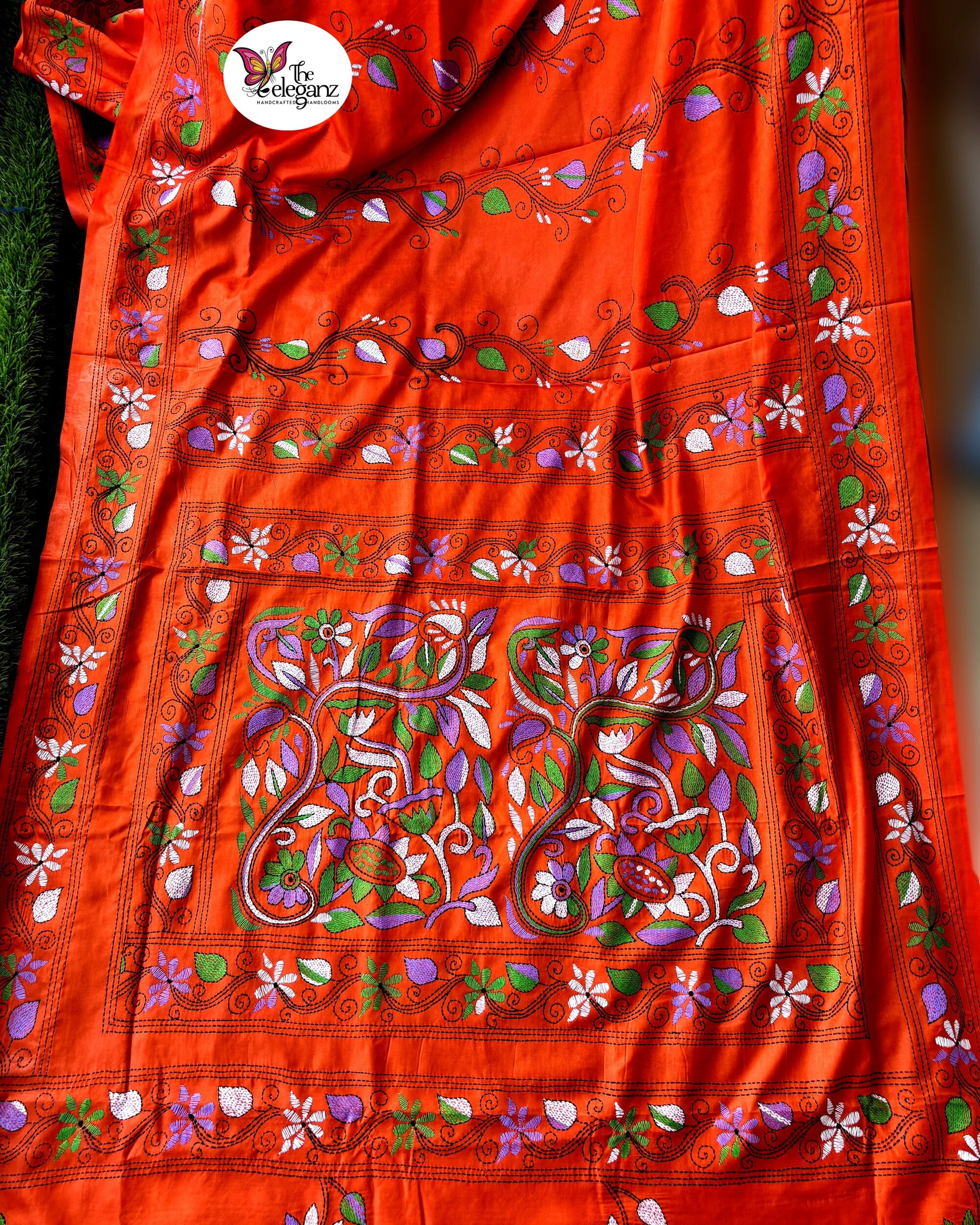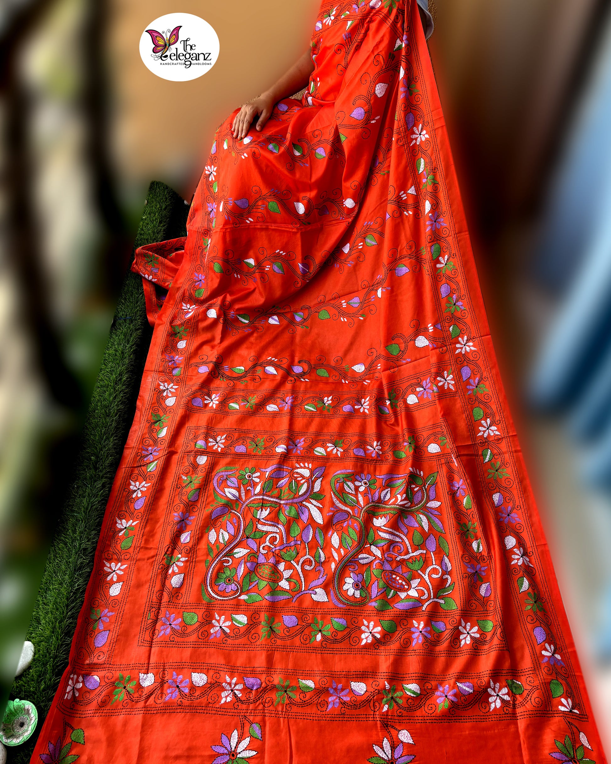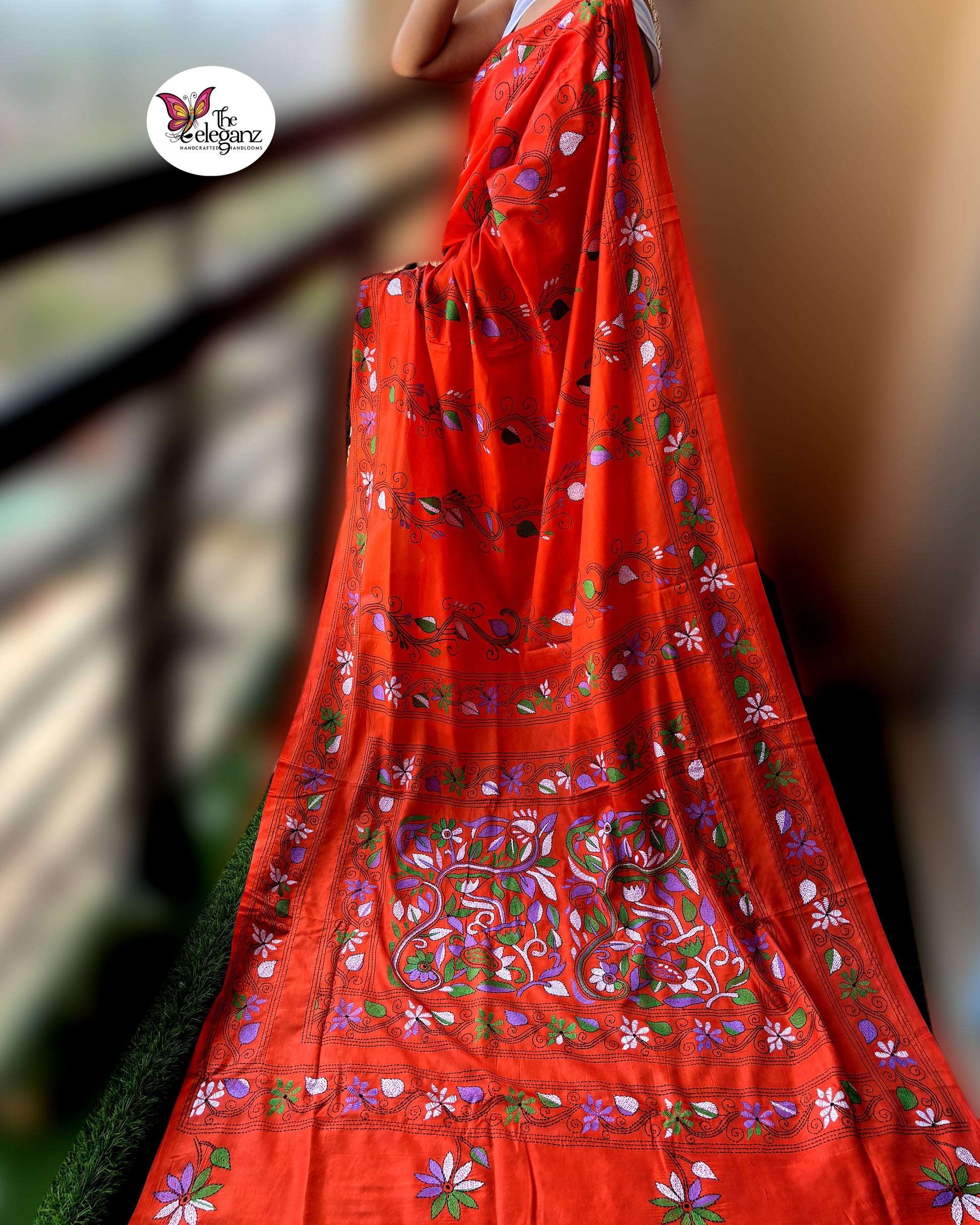 Festive orange alive with multi-coloured flowers and vines, a celebration of abundance and joy.