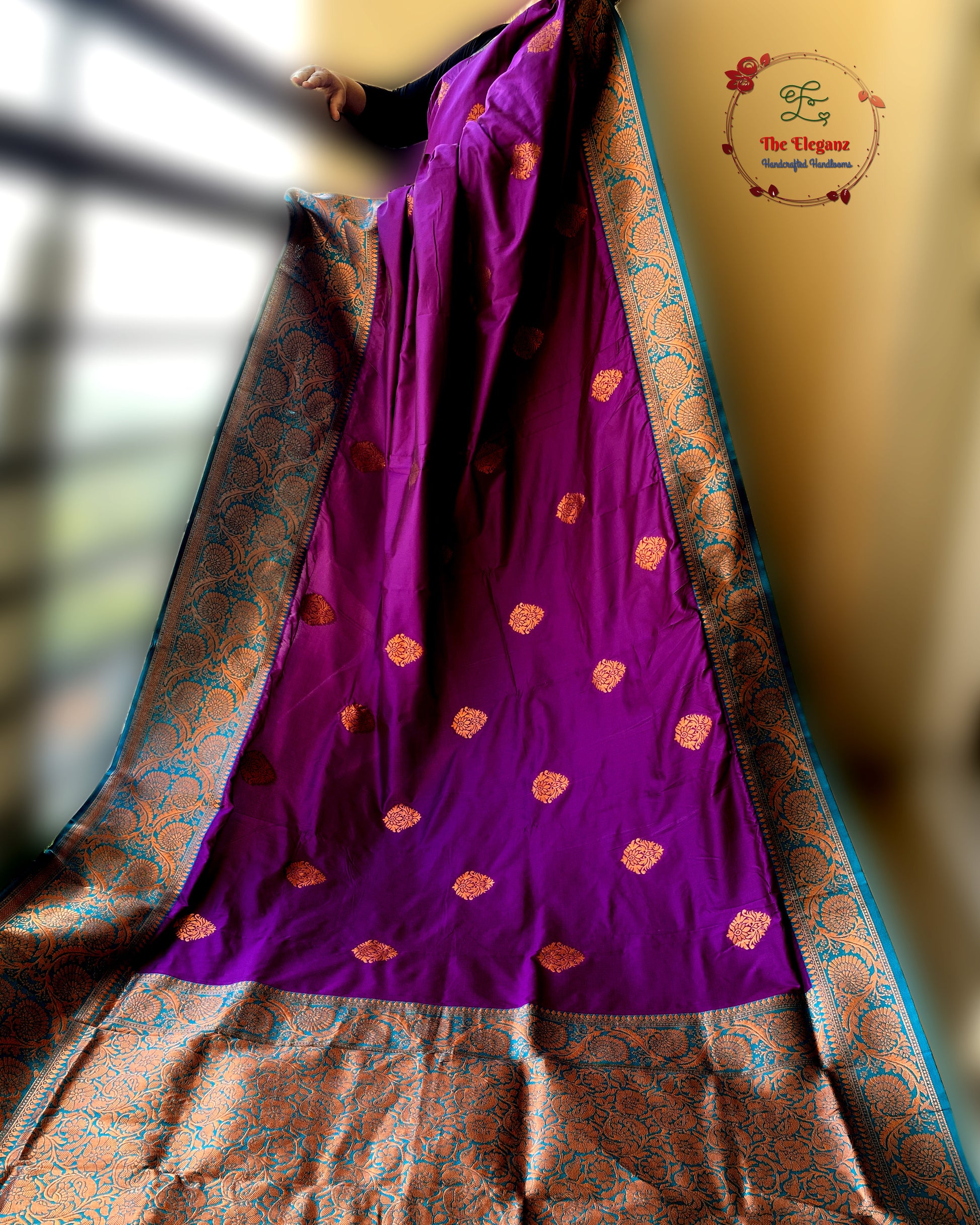 Colour: Rich Violet with Turquoise-Gold Zari Border