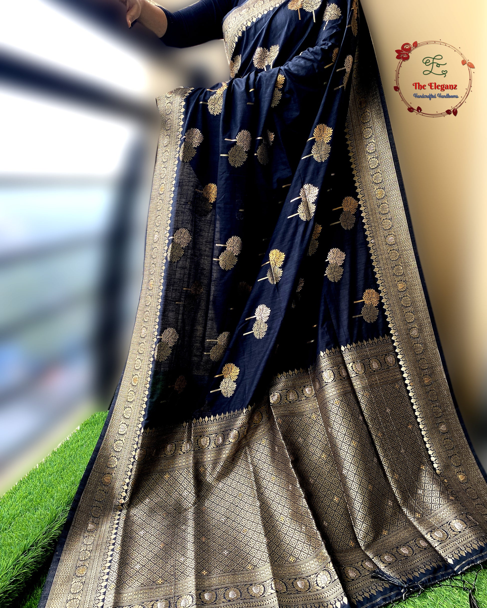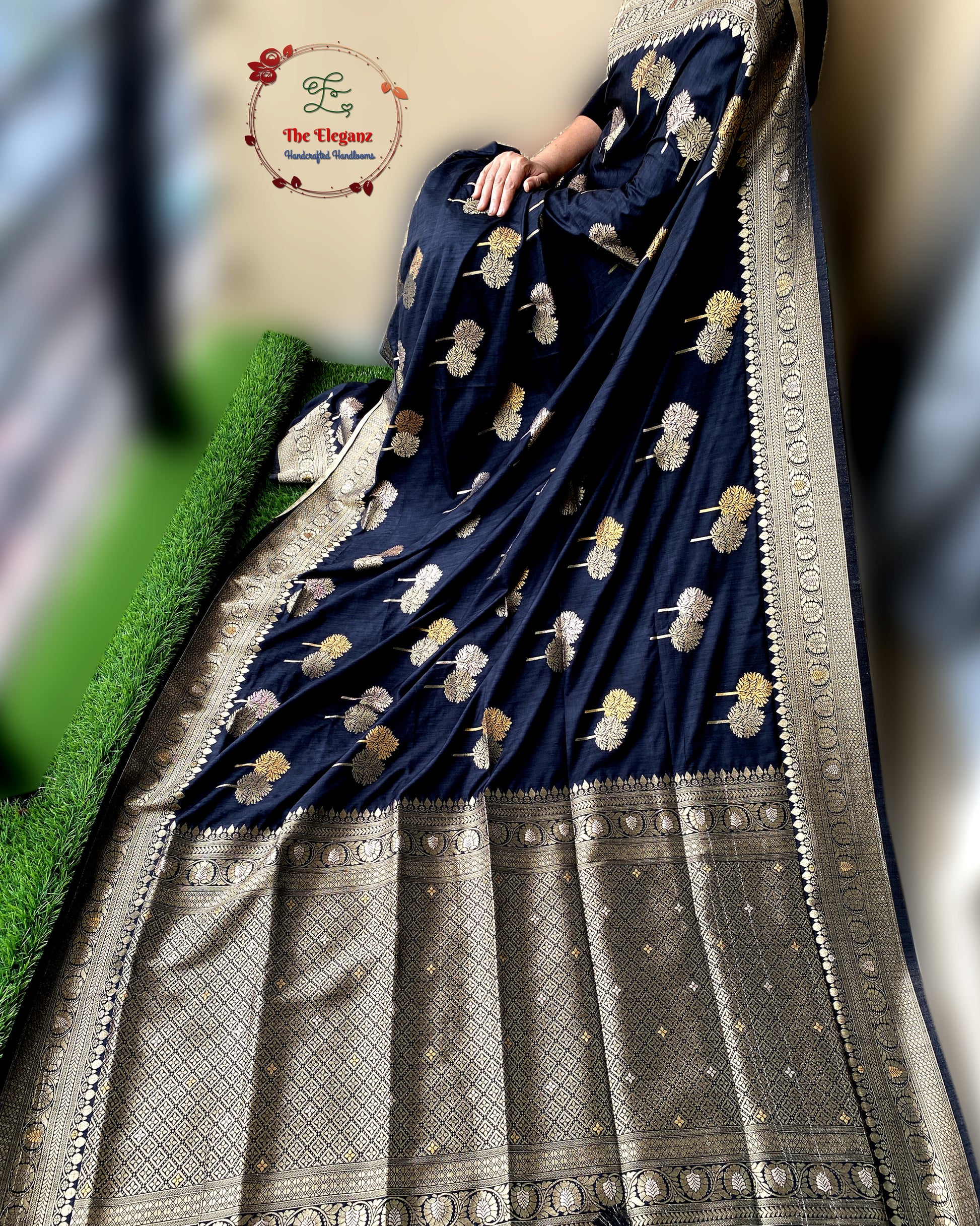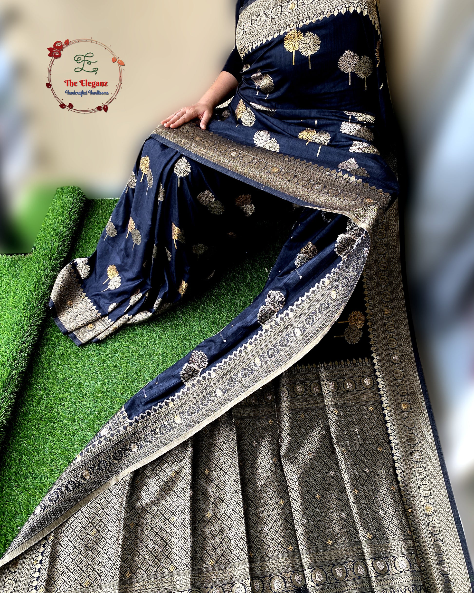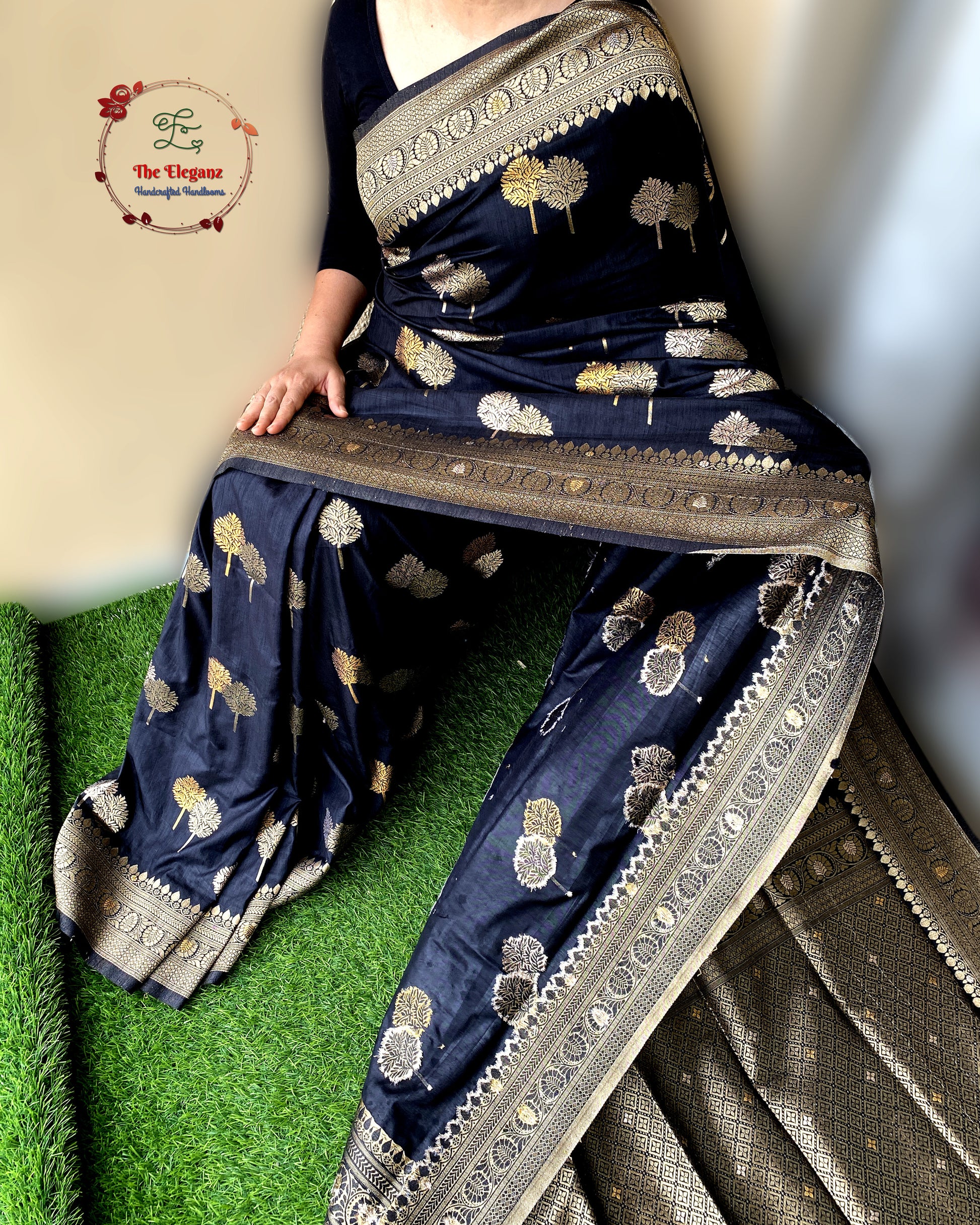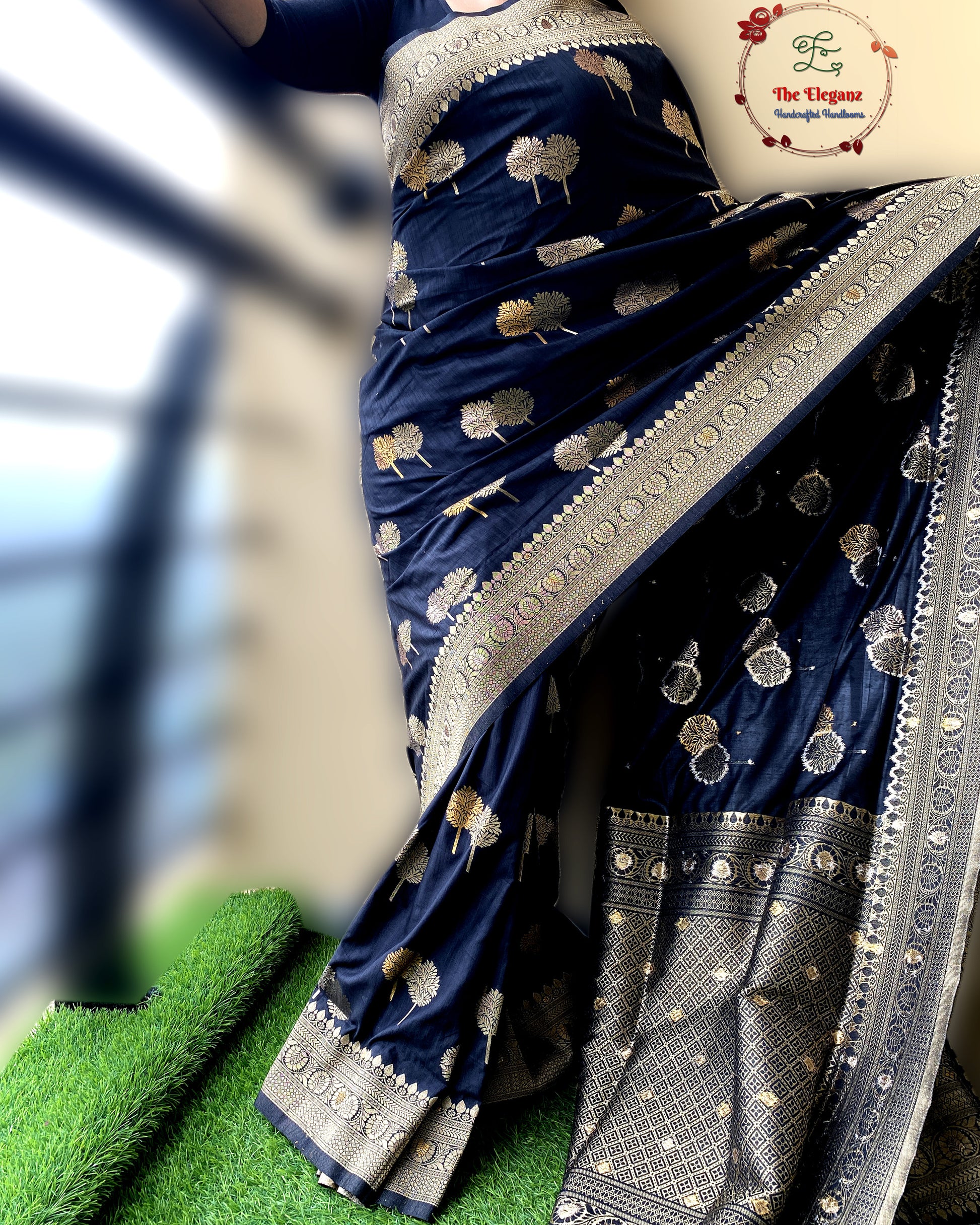 Color: Elegant Black with antique gold zari weaving