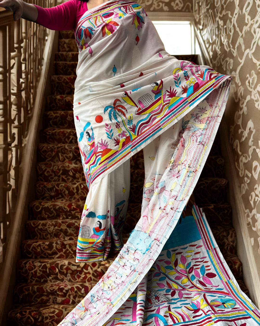 Colour: Ivory White base with multi-colour Kantha embroidery