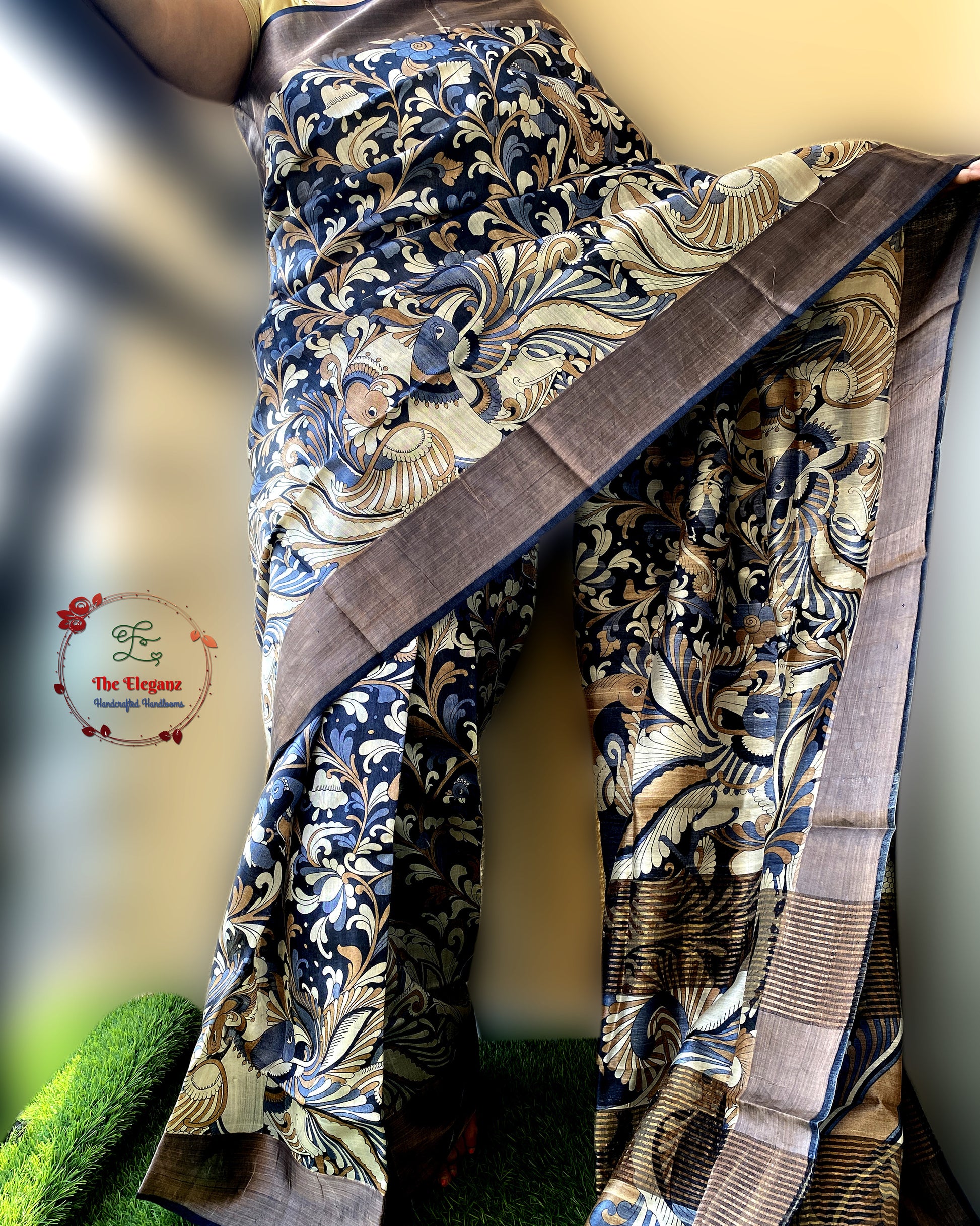 Combination of luxurious Tussar silk and age-old Kalamkari art